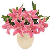 كابينة كيمورا 6 قطع من زهور زنبق النمر الاصطناعية زنابق زائفة ذات ملمس حقيقي مع سيقان نباتات باقة صناعية لحفلات الزفاف وترتيبات الزهور وطاولة المنزل المركزية وديكور المكتب (وردي) in Kuwait