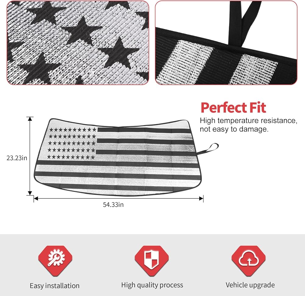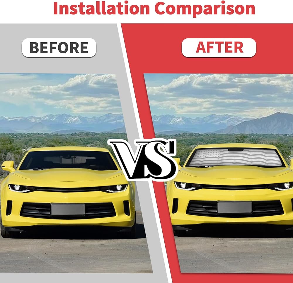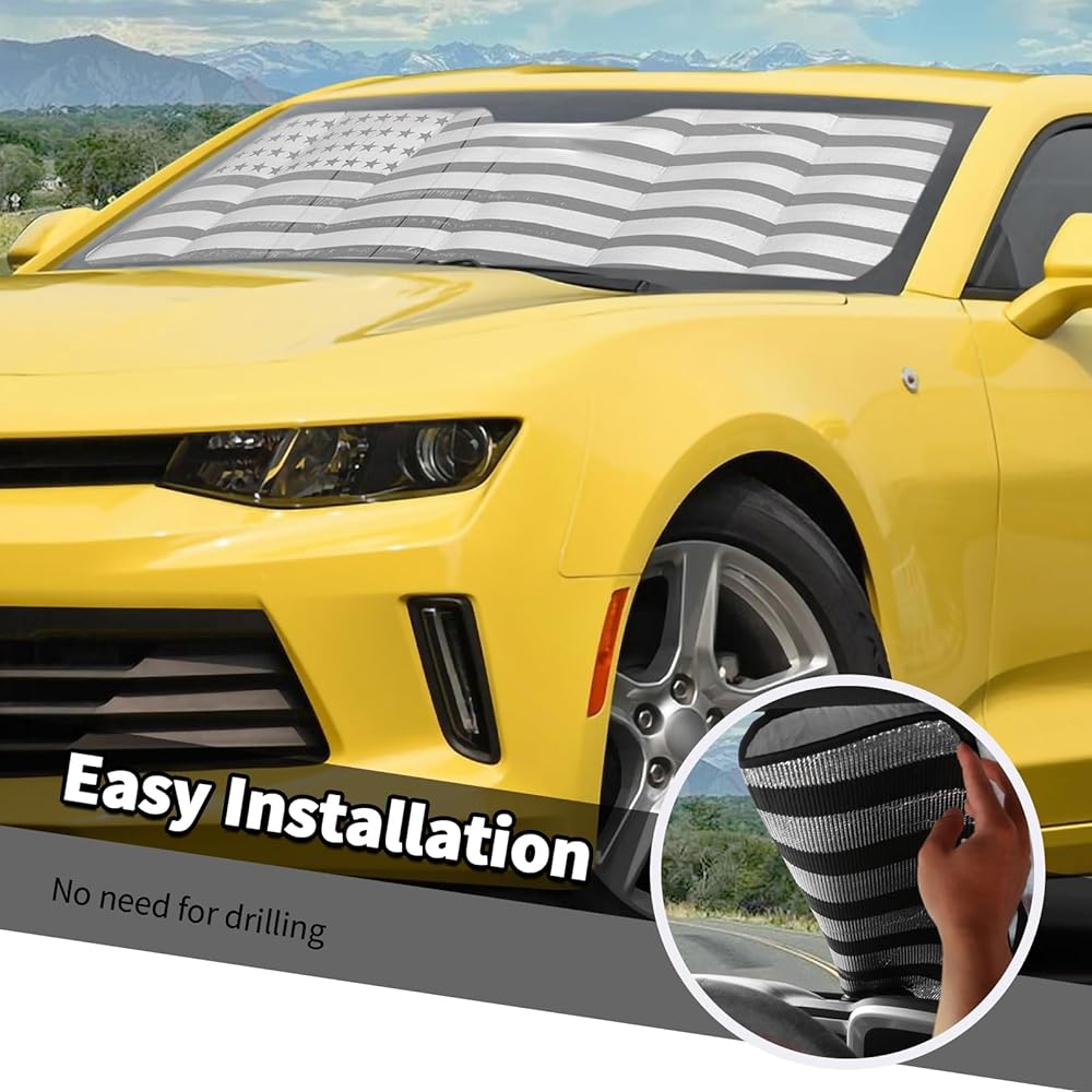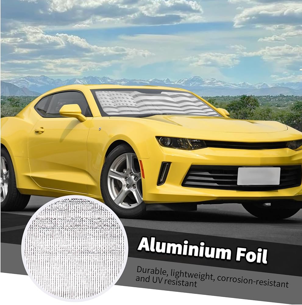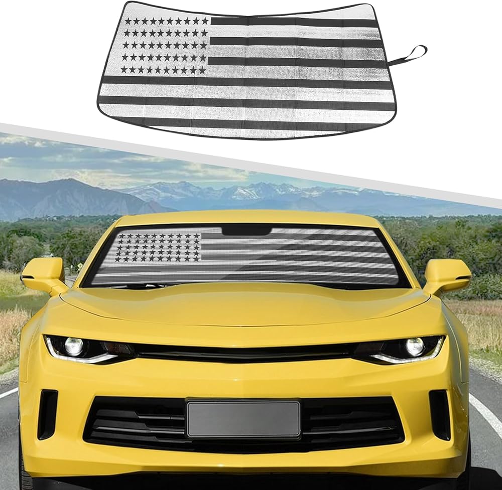 Car Shade for Chevy Camaro, American Flag Windshield Sunshade Window Sun Visor Fit for Chevrolet Camaro 2016-2023