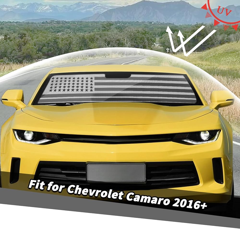 مظلة سيارة لسيارة تشيفي كامارو، حاجب من الشمس للزجاج الأمامي بعلم أمريكي مناسب لسيارة شيفروليه كامارو 2016-2023