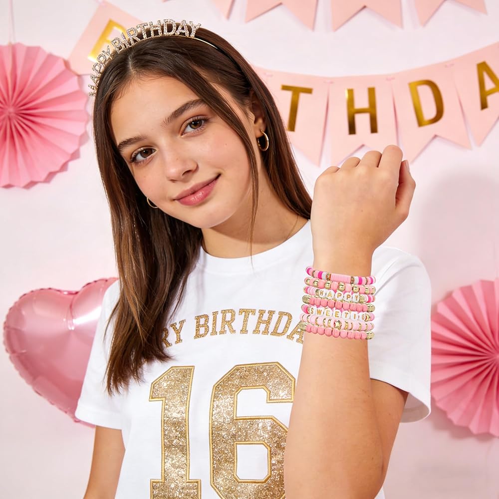 • 🎂【Meaningful Sweet 16 Gift】Celebrate her milestone birthday with this adorable beaded bracelet set featuring “Happy Sweet 16” letter charms. A thoughtful and stylish way to show your love.