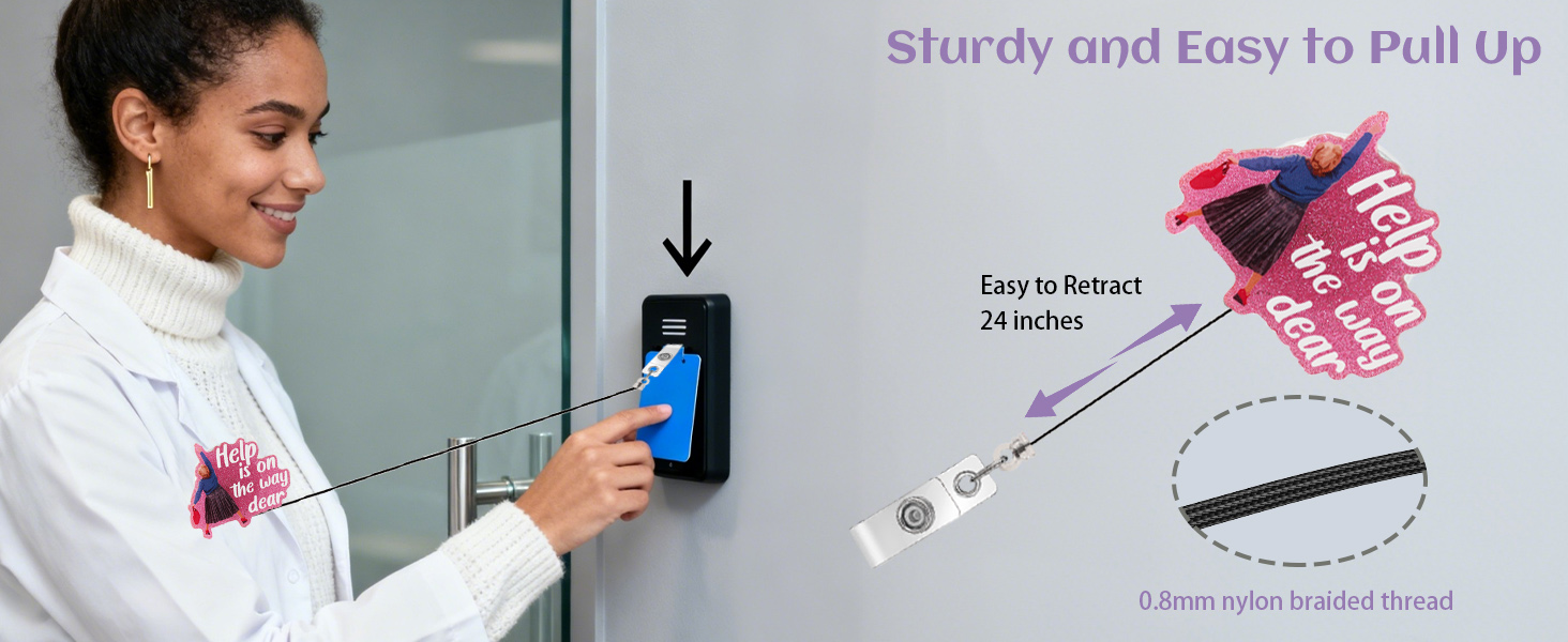 【 تصميم بكرة شارة ممتعة ولطيفة 】: تتم طباعة بكرة الشارة الوردية هذه بالشعار المرح "Help is On The Way Dear"، مما يجعلها نقطة بداية ممتازة للدردشة وإضافة شخصية مرحة إلى الملابس الاحترافية. هذه الحبال الممتعة تجعل العمل أسهل.