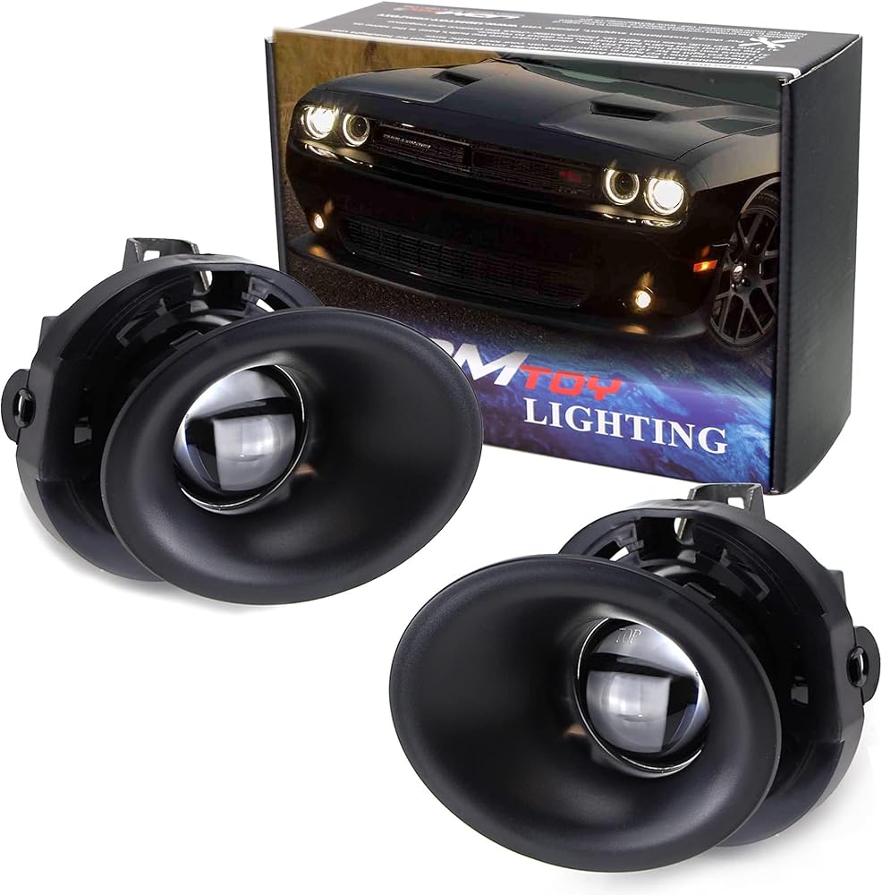 مجموعة مصابيح الضباب ذات العدسات الشفافة من iJDMTOY مع مصابيح هالوجين 9145، وأغطية الإطار، وأسلاك التتابع والتبديل المتوافقة مع دودج تشالنجر 2015-2023