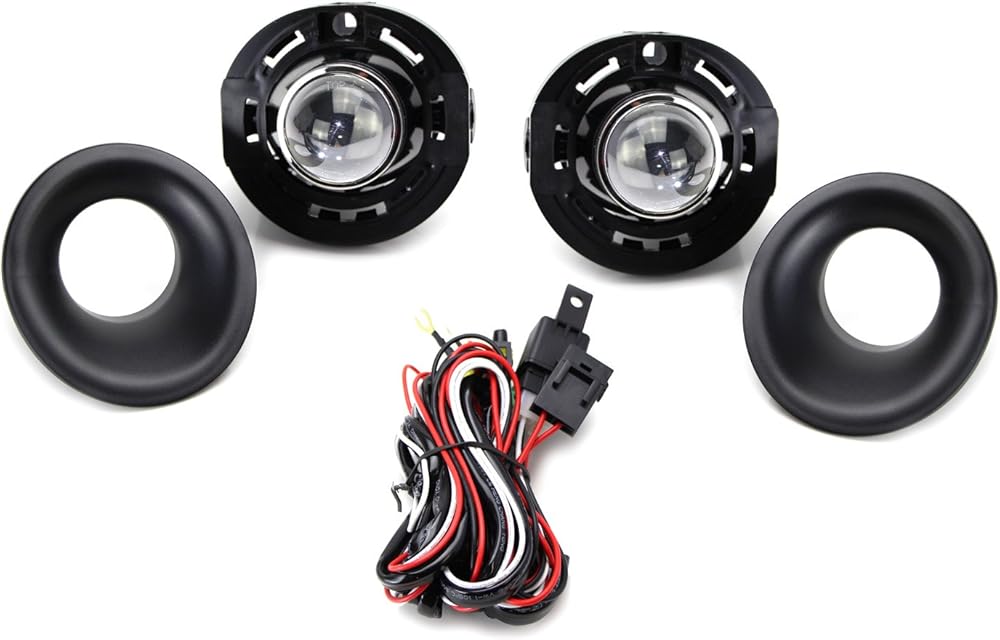 • مجموعة كاملة من مجموعات مصابيح الضباب الجانبية للسائق والراكب مع أغطية إطار وحزام أسلاك مرحل مع مفتاح تشغيل/إيقاف، تتميز بمصابيح هالوجين مثبتة مسبقًا، مثالية للاستبدال أو ترقية إضافية جديدة