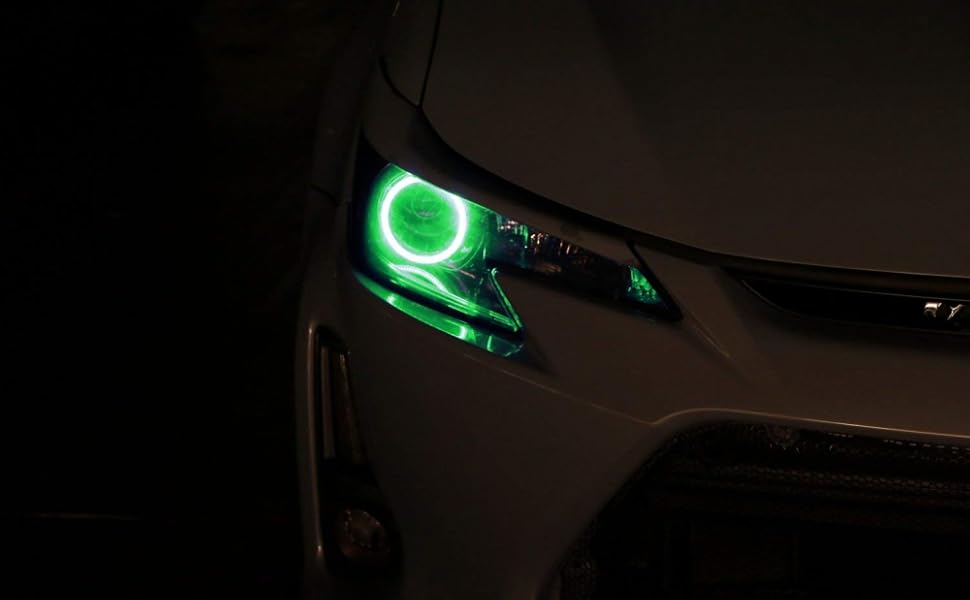 يأتي مع (2) لوحات دوائر دائرية على شكل حرف O RGB متعددة الألوان LED على شكل عين الملاك، وصندوق وحدة تغيير اللون RGB مع أداة ضبط محمولة لتبسيط عملية الترقية التحديثية الخاصة بك