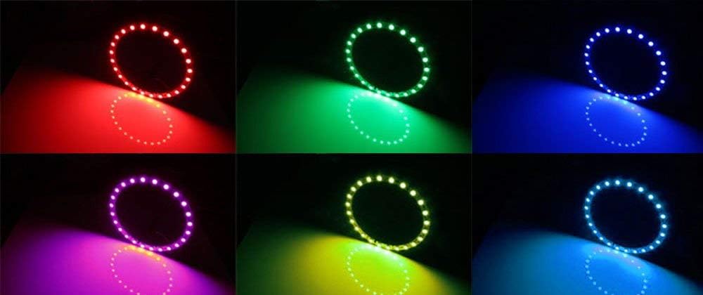 تتميز بثنائيات LED RGB (بواعث حمراء/أخضر/زرقاء) فائقة السطوع لإضاءة فائقة السطوع بـ 7 ألوان مختلفة، مما يوفر ستة أضعاف السطوع مقارنةً بحلقات هالة CCFL/EL/COB التقليدية أو مصابيح علامة الحلقة LED