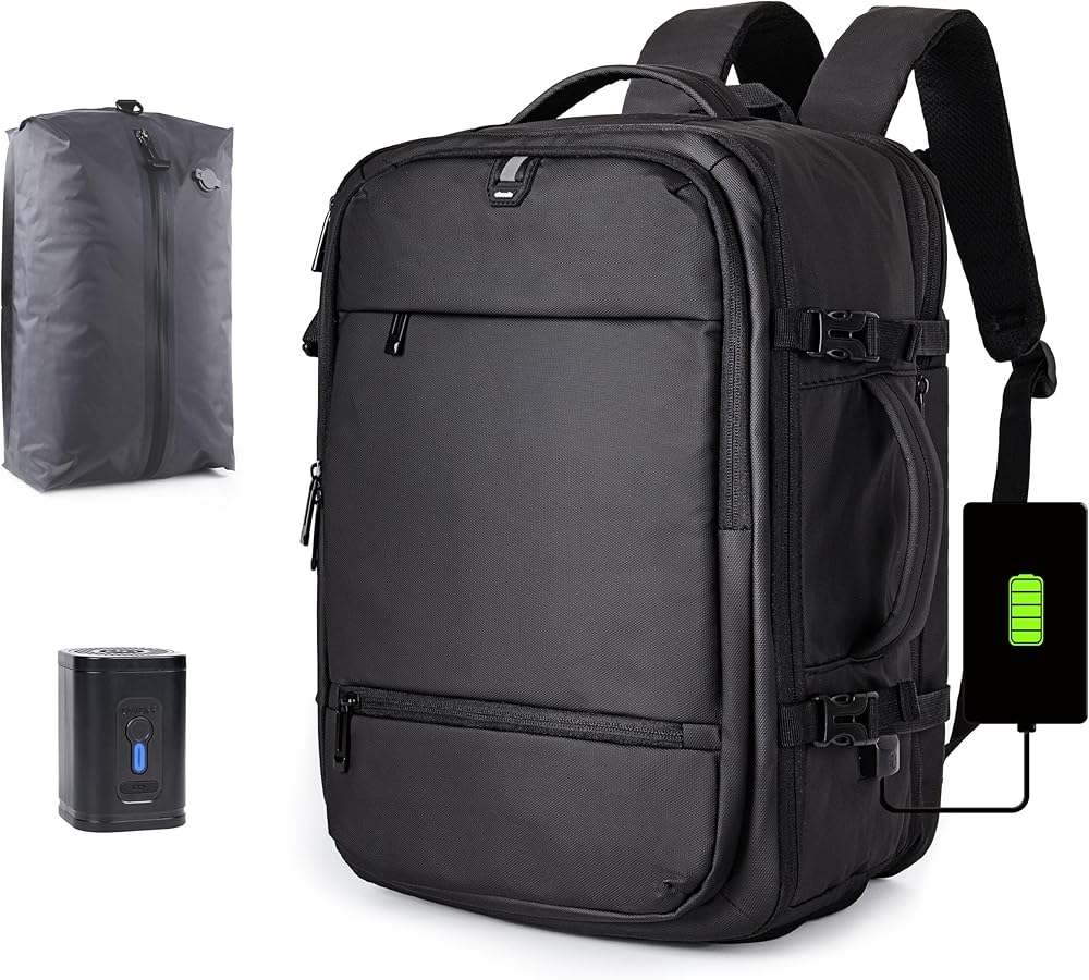 [سعة قابلة للتوسيع - من 30 لترًا إلى 60 لترًا] مصممة للتعبئة الفعالة، تتسع حقيبة الظهر القابلة للضغط هذه من 30 لترًا (17.8 بوصة × 13 بوصة × 7.8 بوصة) إلى 38 لترًا (17.8 بوصة × 13 بوصة × 10 بوصة)، وهي تناسب بشكل ملحوظ أكثر من حقيبة الظهر القياسية للسفر للرجال. من خلال استخدام نظام ضغط فاكباك، فإنه يوفر ما يصل إلى 50% من المساحة - أي ما يعادل حقيبة مقاس 24 بوصة (60 لترًا) - مما يجعلها حقيبة حمل مثالية للرجال والنساء.