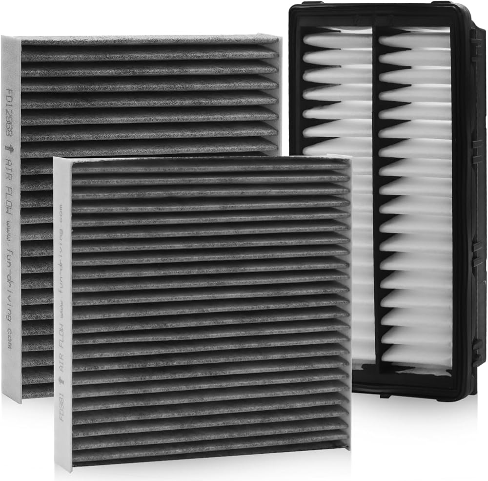 • Perfect Fit Guarantee:Includes 2 filters per kit (1 cabin + 1 engine filter)—saving you time and extra costs. Verify compatibility using Amazon's "My Garage" feature before purchase.