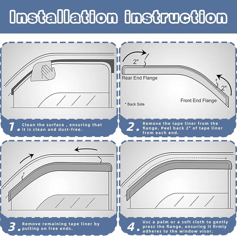 التثبيت👍-لا حاجة لأي حفر أو أداة خاصة. أقنعة النوافذ من YLSCOO مع شريط من أجل قبضة قوية للغاية، لا حاجة للحفر، ولا يوجد إزعاج في النوافذ لأعلى وأسفل. (ملاحظة: تجنب غسل سيارتك لمدة 25 ساعة الأولى بعد التثبيت)