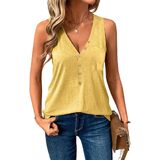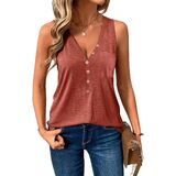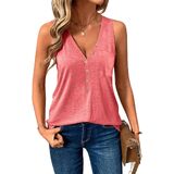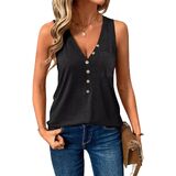 قميص بدون أكمام للنساء برقبة على شكل حرف V فضفاض من Henley مع جيب، ملابس علوية نسائية صيفية بدون أكمام كاجوال in Kuwait