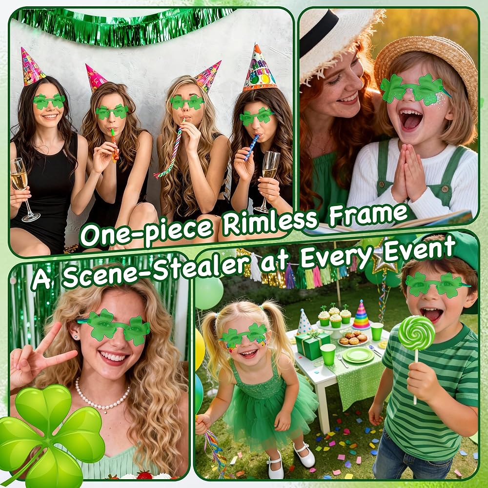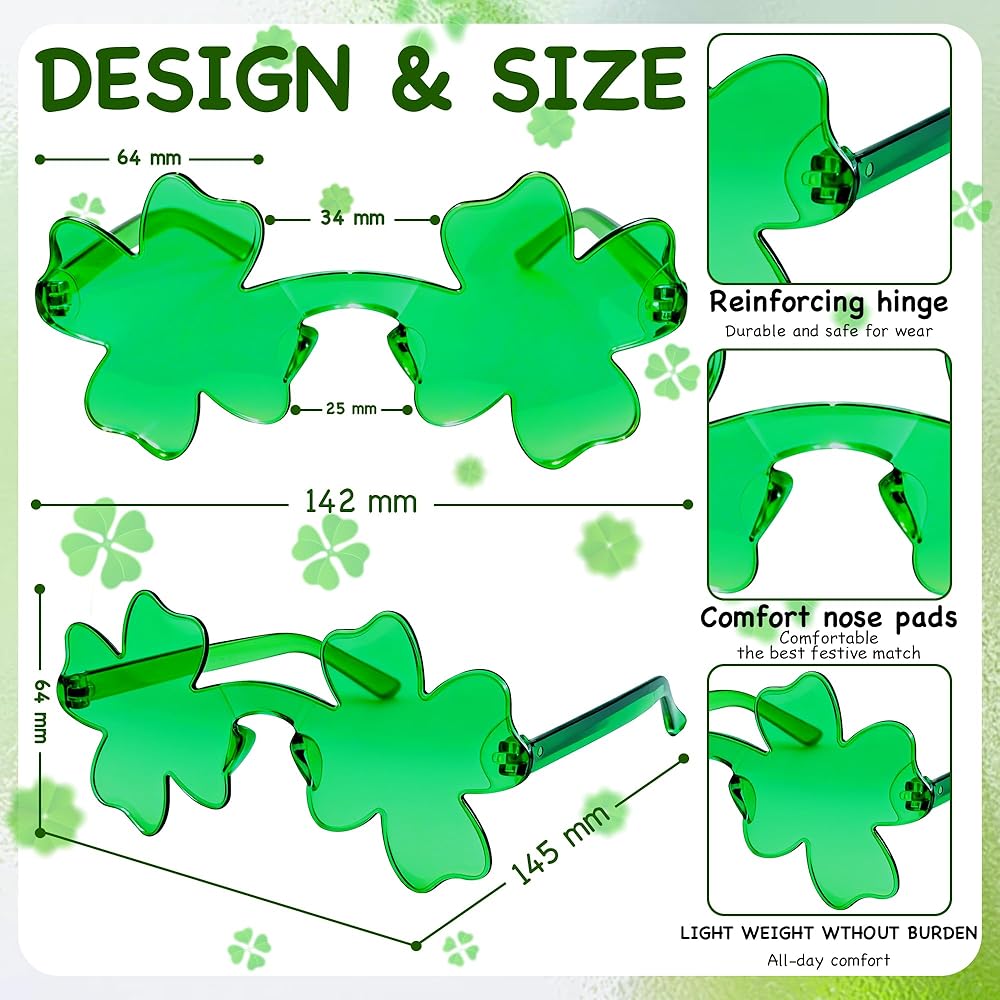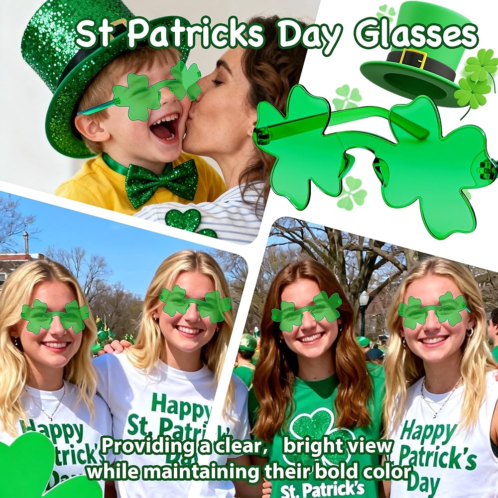 • 【Vibrant Visuals & Easy to Use】Experience the world through a lucky green lens! These St Patricks Day glasses provide a clear, bright view while maintaining their bold color. Easy to carry in a pocket or bag, they are the Irish party favors you need to complete your Saint Patrick's Day props collection and memories.