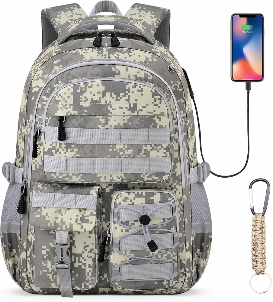 【USB أثناء التنقل】تتميز حقيبة ظهر الأطفال هذه ذات الطراز العسكري من tcamo بمنفذ USB مريح للغاية وكابل شحن مدمج، حتى تتمكن من تشغيل هاتفك أو جهازك اللوحي في أي وقت وفي أي مكان!