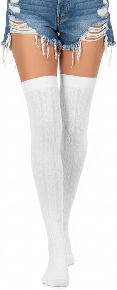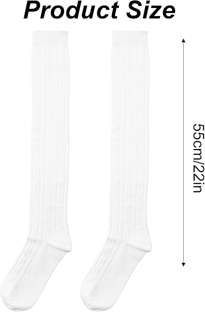 جوارب عالية متماسكة للفخذ، جوارب بيضاء عالية الركبة من القطن فوق الركبة للنساء محبوكة بأعلى الفخذين من الصوف، غير قابلة للانزلاق وطويلة للغاية، مثالية للأحذية طويلة الرقبة، بيضاء