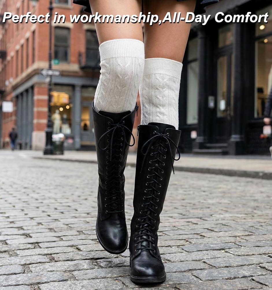 نسيج كابل مريح - جوارب الفخذ العالية المنسوجة لدينا مصنوعة من مزيج من 75% قطن، و23% ألياف لدنة، و2% نايلون، مما يضمن شعورًا ناعمًا ومساميًا ودافئًا للارتداء في الخريف والشتاء.