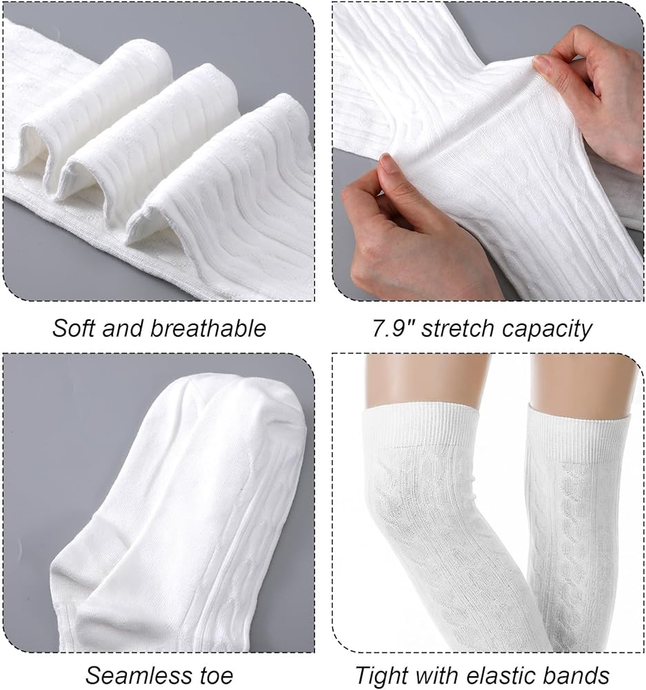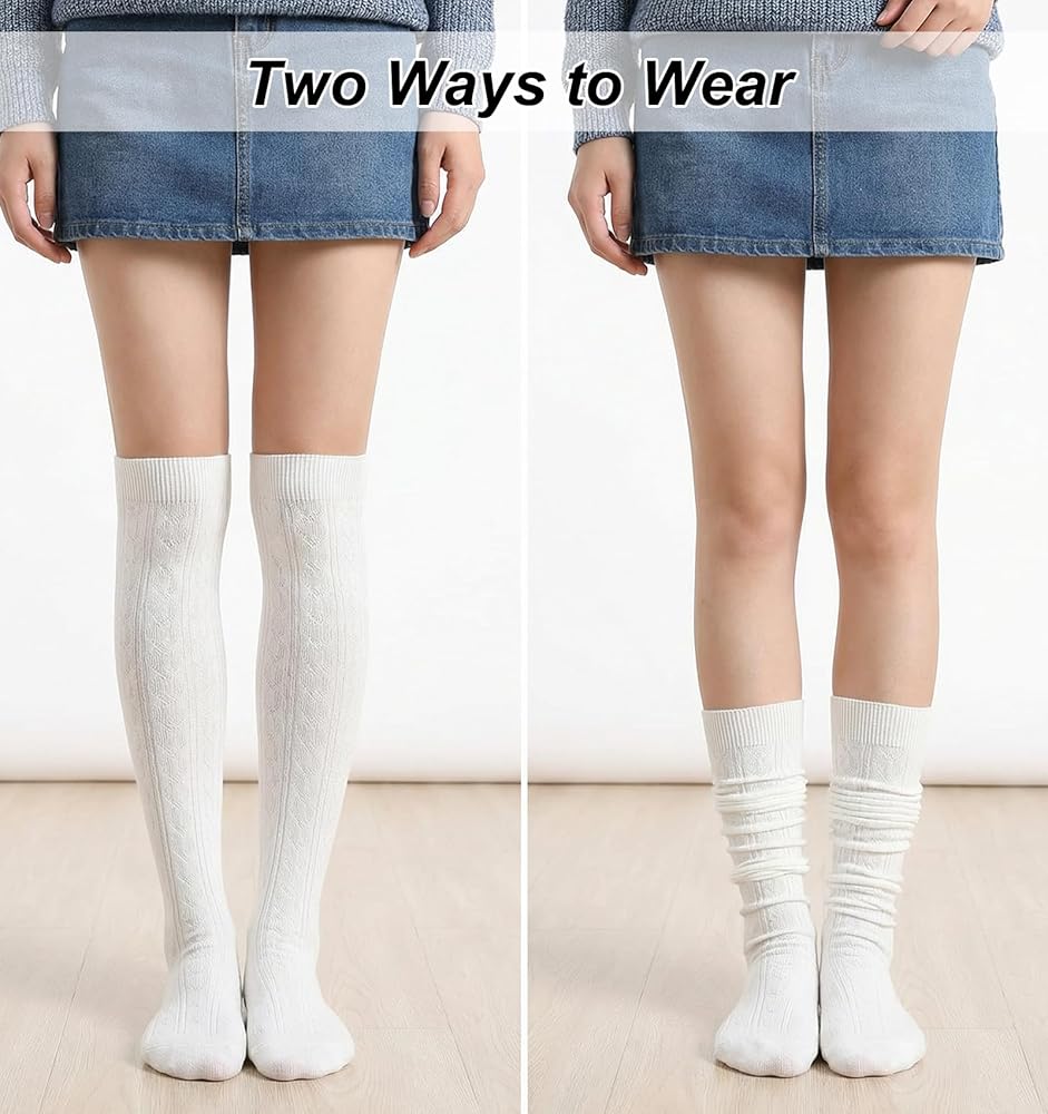 طبقات أنيقة - مثالية للارتداء مع التنانير أو السراويل القصيرة، يمكن تصميم الجوارب البيضاء العالية للفخذ على أنها جوارب عالية الفخذ، أو فوق جوارب الساق، أو جوارب طويلة حتى الركبة، مما يجعلها إكسسوارًا متعدد الاستخدامات لأي ملابس