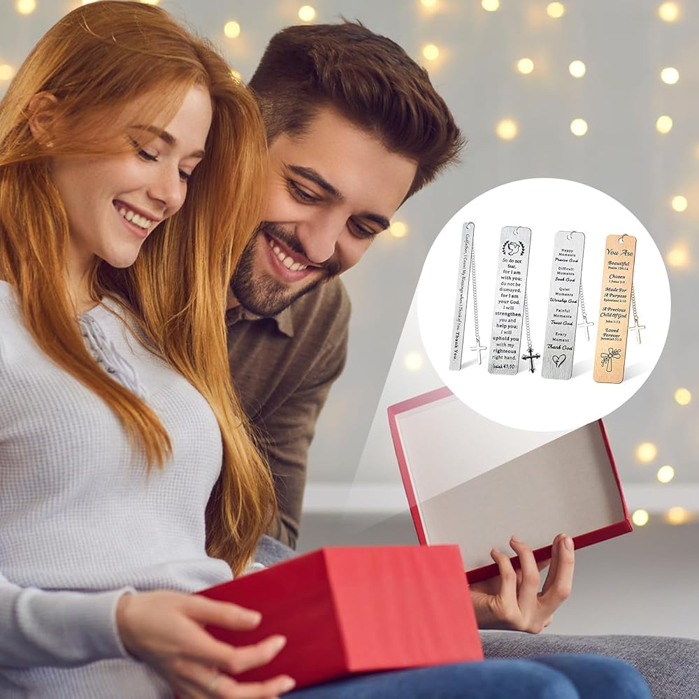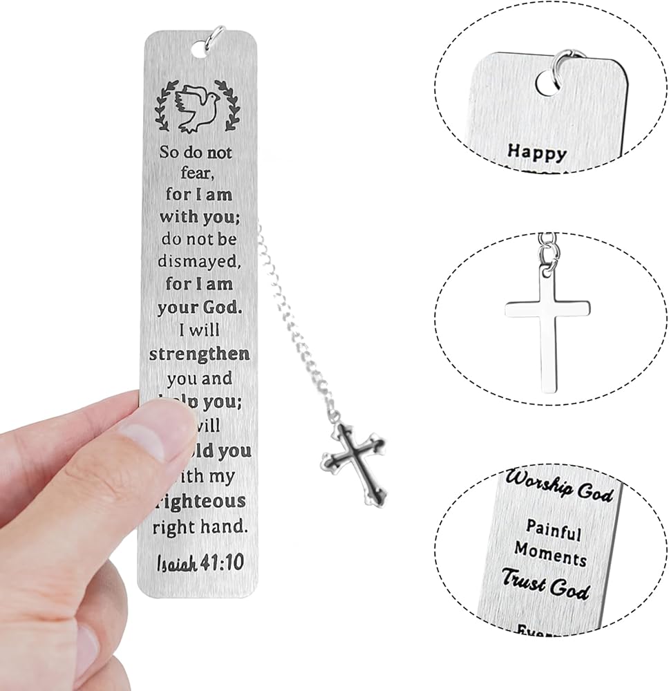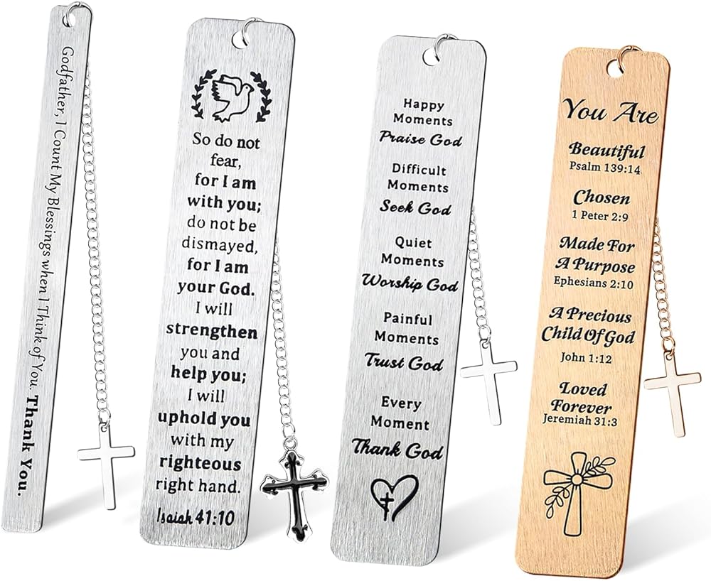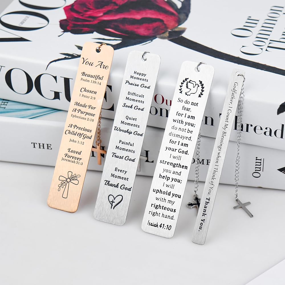 هدايا المرجعية المسيحية للنساء والرجال، علامات الكتاب المقدس المعدنية السائبة مقاس 5 بوصات مع قلادة متقاطعة، هدية مرجعية دينية هدايا إيمانية (عبوة من 4)