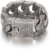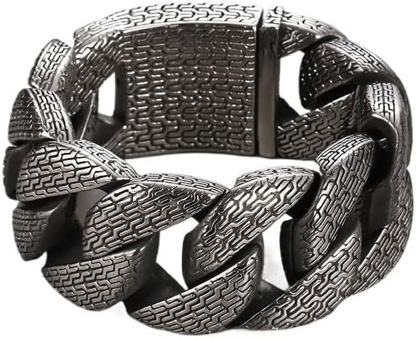 Made from titanium steel, the bracelet carries an exceptional 311 g weight, delivering a dense, solid metal presence designed for men who want substance, not subtlety. The vintage-inspired surface texture avoids high polish, reinforcing its raw, powerful character rather than decorative shine.