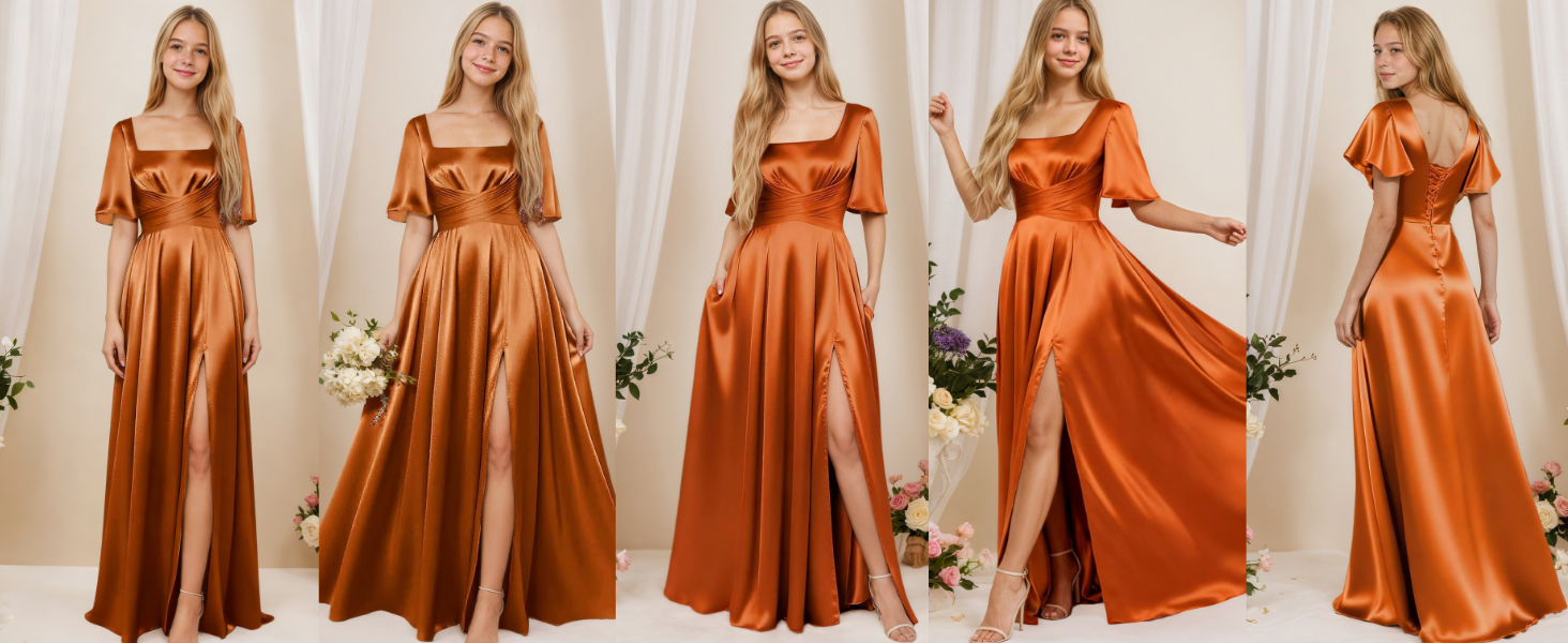 Features: Satin,Flutter Sleeve,Short Sleeve,Slit,Pleated,Square Neck,Pockets,Floor Length,A Line,High Waist,Drawstring,Polyester Fabric: High Quality Satin Silhouette: A-line Sleeve: Short Sleeve Back Details: Lace up Back Customize service: if you want get a customized size dress, please feel free to contact us Or choose the Size 00, then fill in your child's specific measurements.We will not charge any extra custom fees.