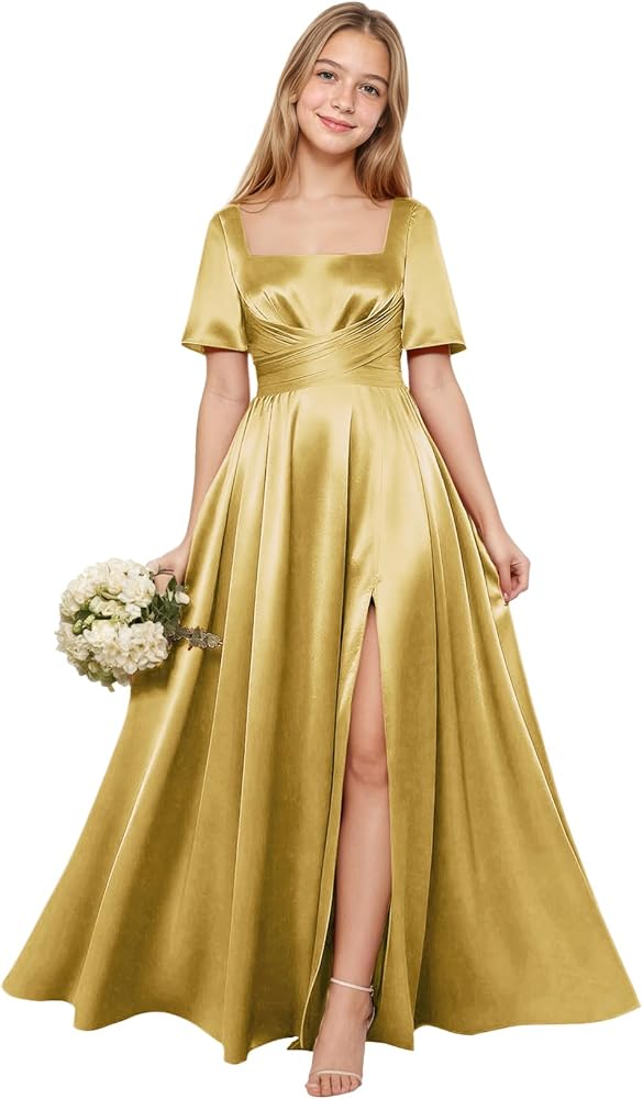 • Fabric:This flutter sleeve junior bridesmaid dress made of premium satin fabric, short sleeve girls formal dresses,satin flower girl dresses for wedding,junior bridesmaid dresses with pockets,short sleeve junior bridesmaid dresses a line,square neck wedding guest dresses for teen girls,long prom dresses for teens with side silt,pleated junior dresses for teen girls formal,your little princess will be excited about this gorgeous satin dress.
