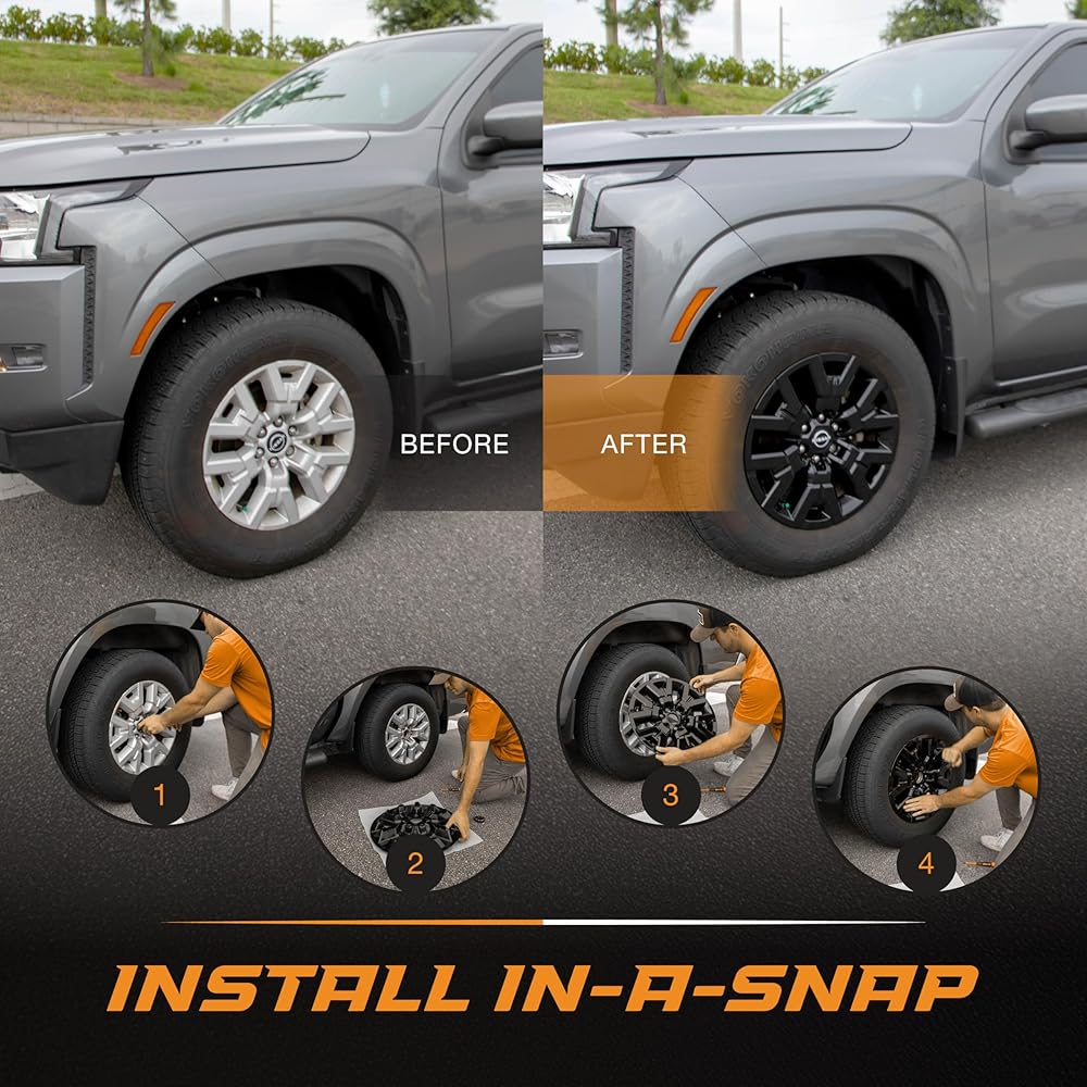 يتم تركيبه في دقائق: تم تصميم أغلفة العجلات هذه للتركيب السريع والسهل، ببساطة على عجلة OEM من أجل ترقية سلسة لعجلاتك الحالية.