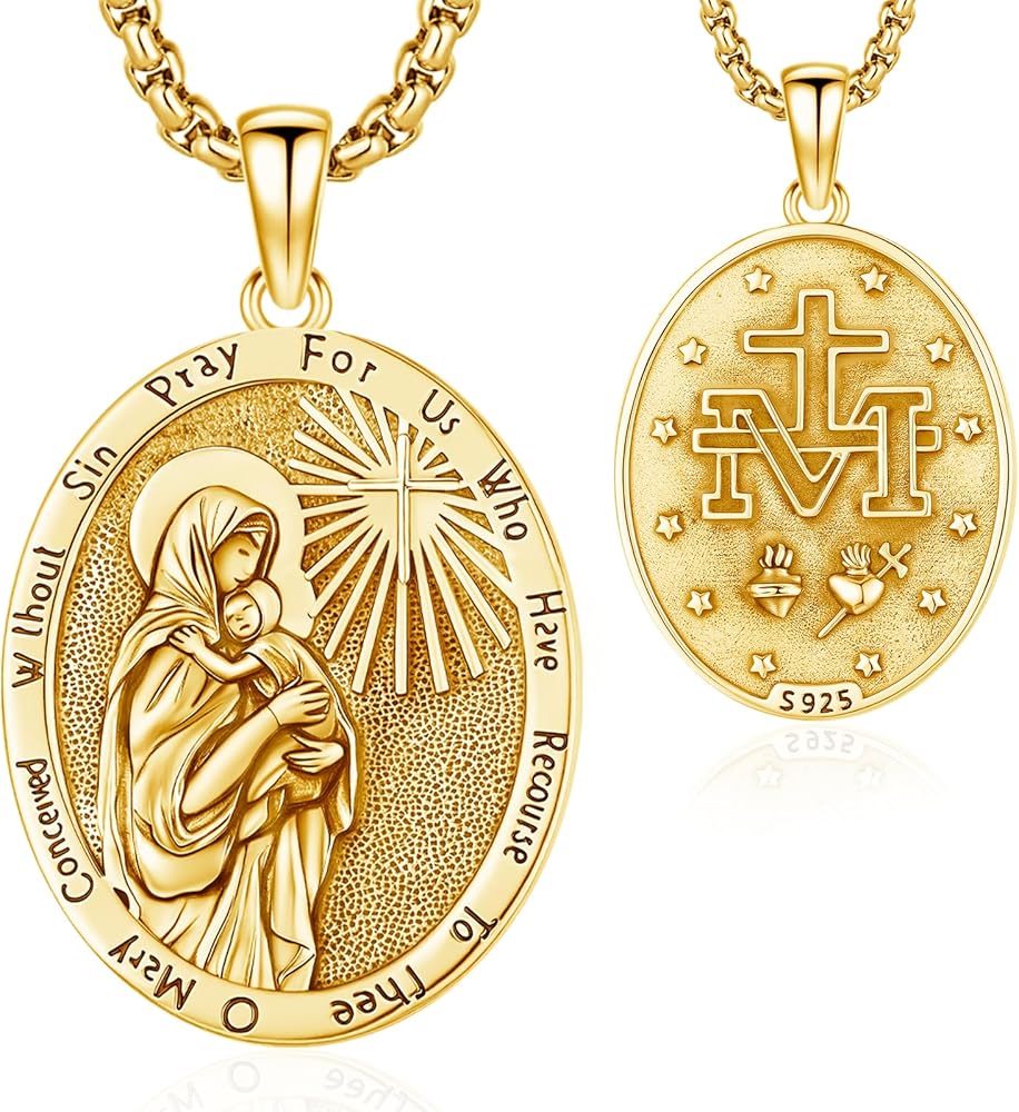 Material of Miraculous Medal Necklace: Catholic Virgin Mary pendant is made of S925 sterling silver with gold plating and the chain is made of stainless steel. Mother Mary necklace is of qualified quality and does not contain nickel, lead, or cadmium.