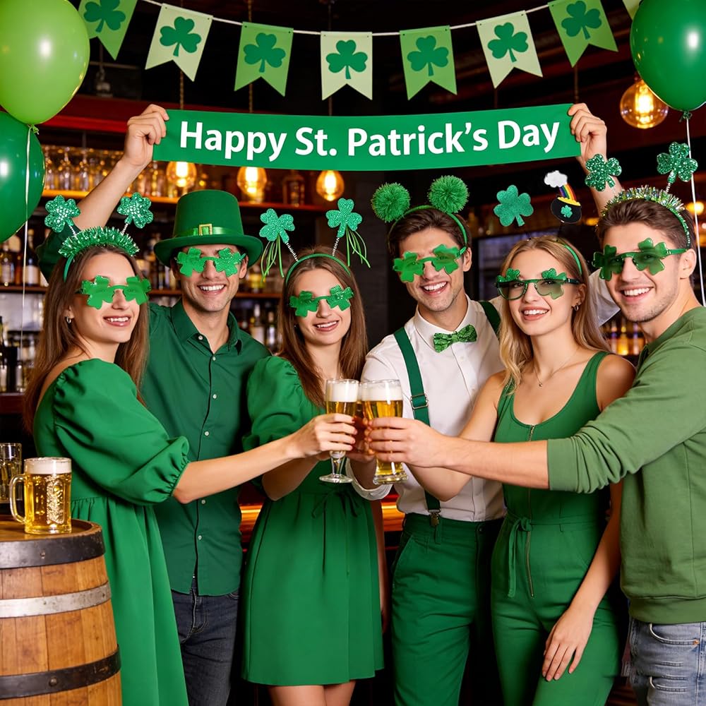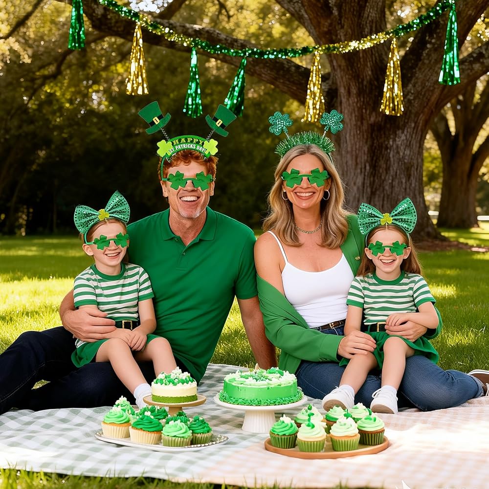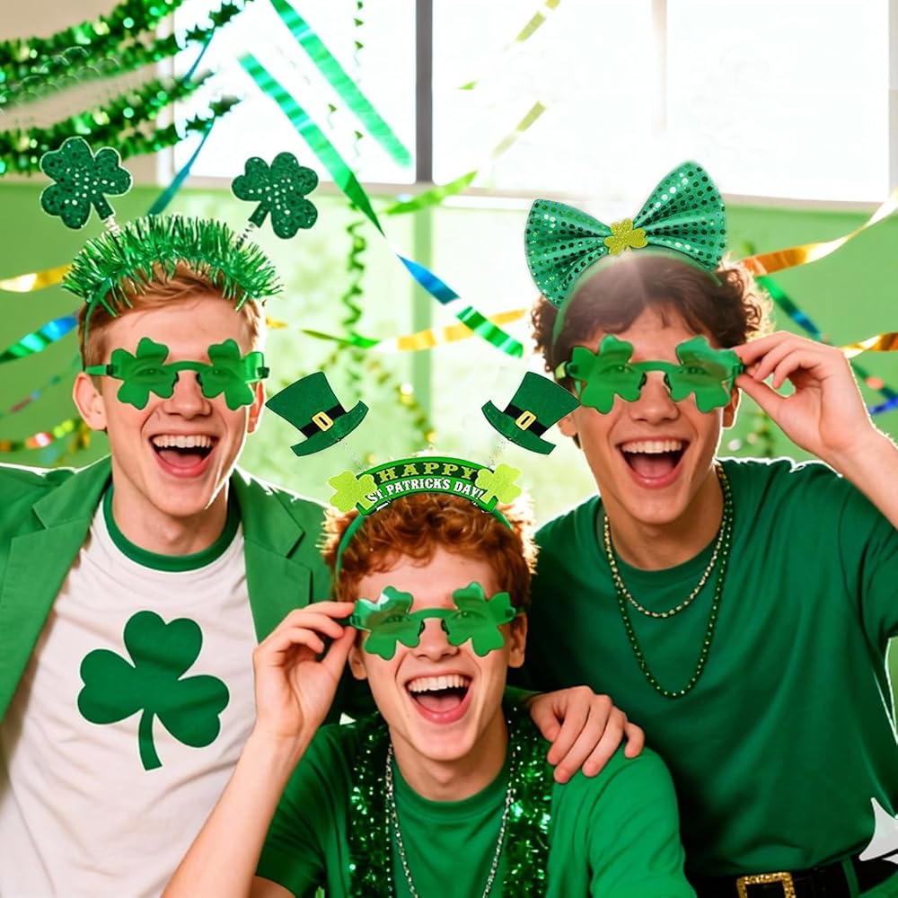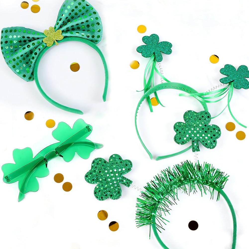 Festive 10-Piece St. Patrick's Day Accessories Set:This value-packed set includes 5 pairs of st patricks day glasses (charming shamrock sunglasses) and 5 st patricks day headbands (stylish shamrock headband designs), covering glitter clover, green bow, and hat styles. As essential st patricks day accessories, it's ideal for gifting at St. Patrick's Day parties, parades, or Irish-themed events—spreading festive cheer to friends and family.