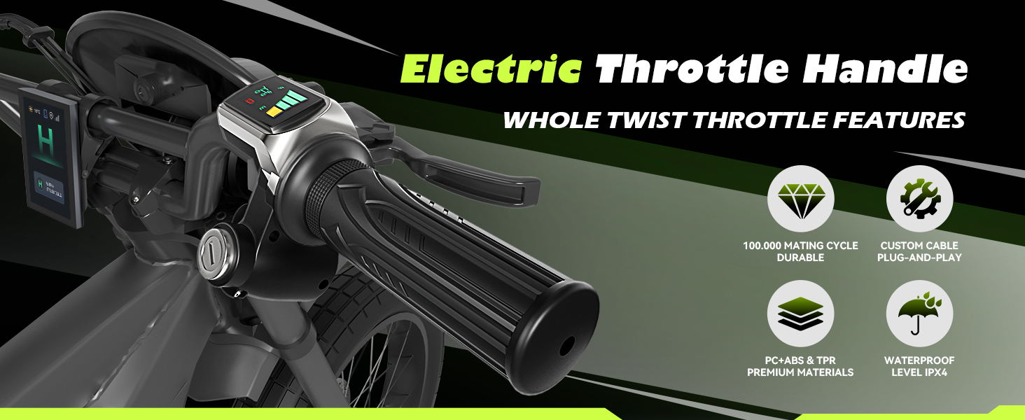 خنق دراجة كهربائية 48 فولت مع شاشة LED وقفل مفتاح، خنق نصف ملتوي متوافق مع سلسلة Ridstar Q20، قطع غيار الدراجات النارية الكهربائية العالمية للدراجات النارية