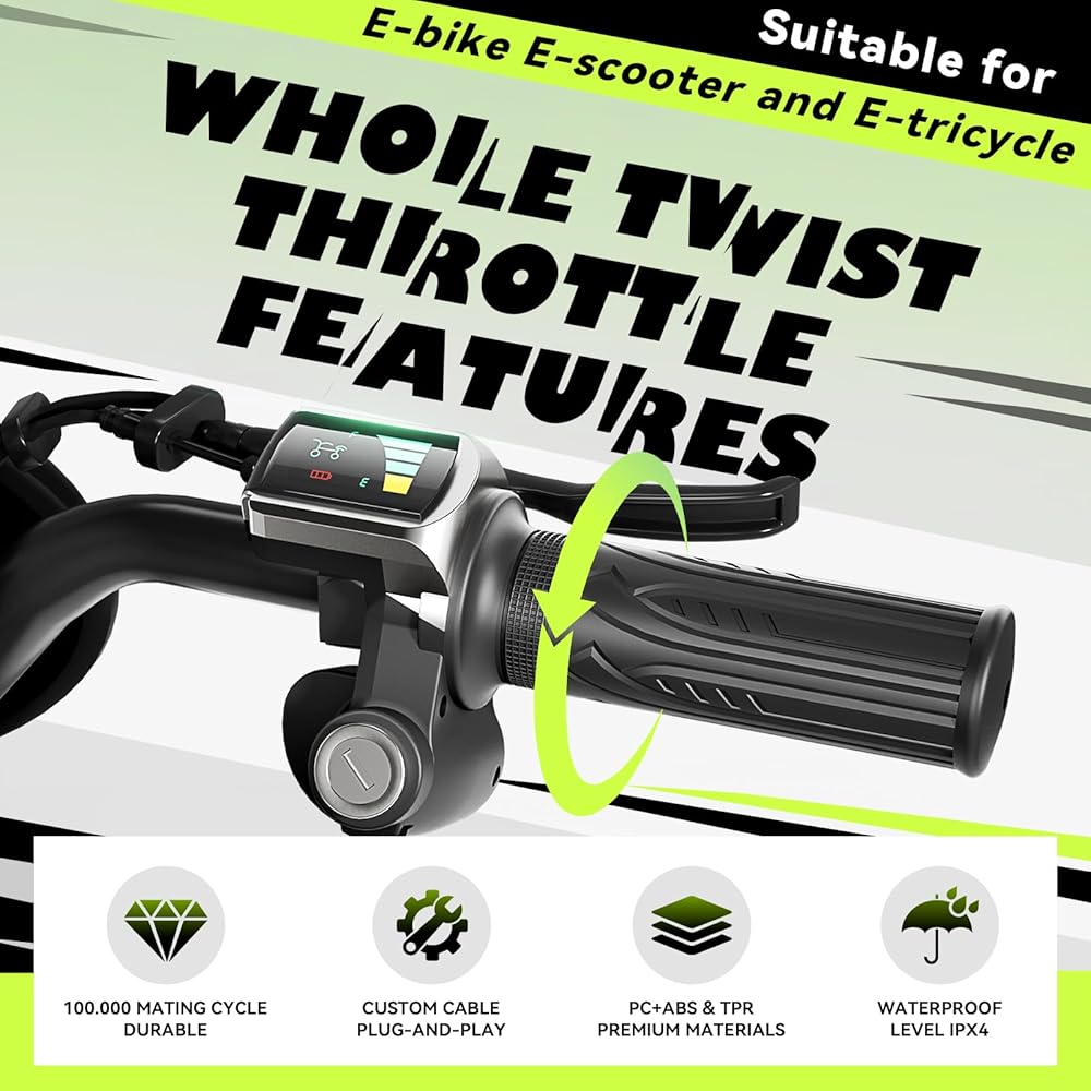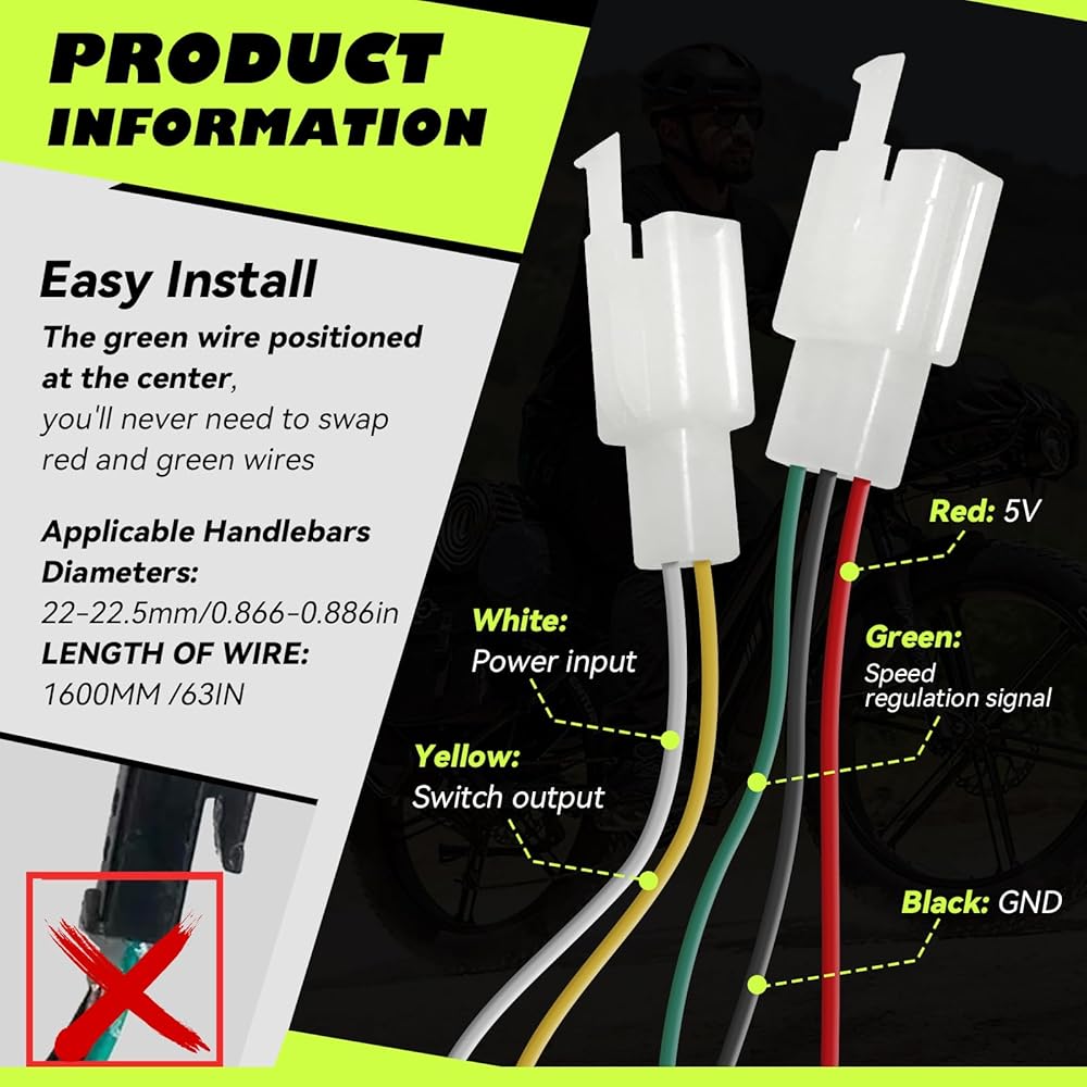 • 【تركيب سهل التوصيل والتشغيل】: احصل على إعداد خالٍ من اللحام في دقائق مع هذا الخانق العالمي ذو 3 دبابيس نصف ملتوي. تضمن الأسلاك المرمزة بالألوان والكابل بطول 1.6 متر الاستبدال الصحيح والمباشر لسلسلة Ridstar Q20 والعديد من الدراجات الإلكترونية والدراجات البخارية والدراجات النارية الأخرى بقوة 48 فولت.