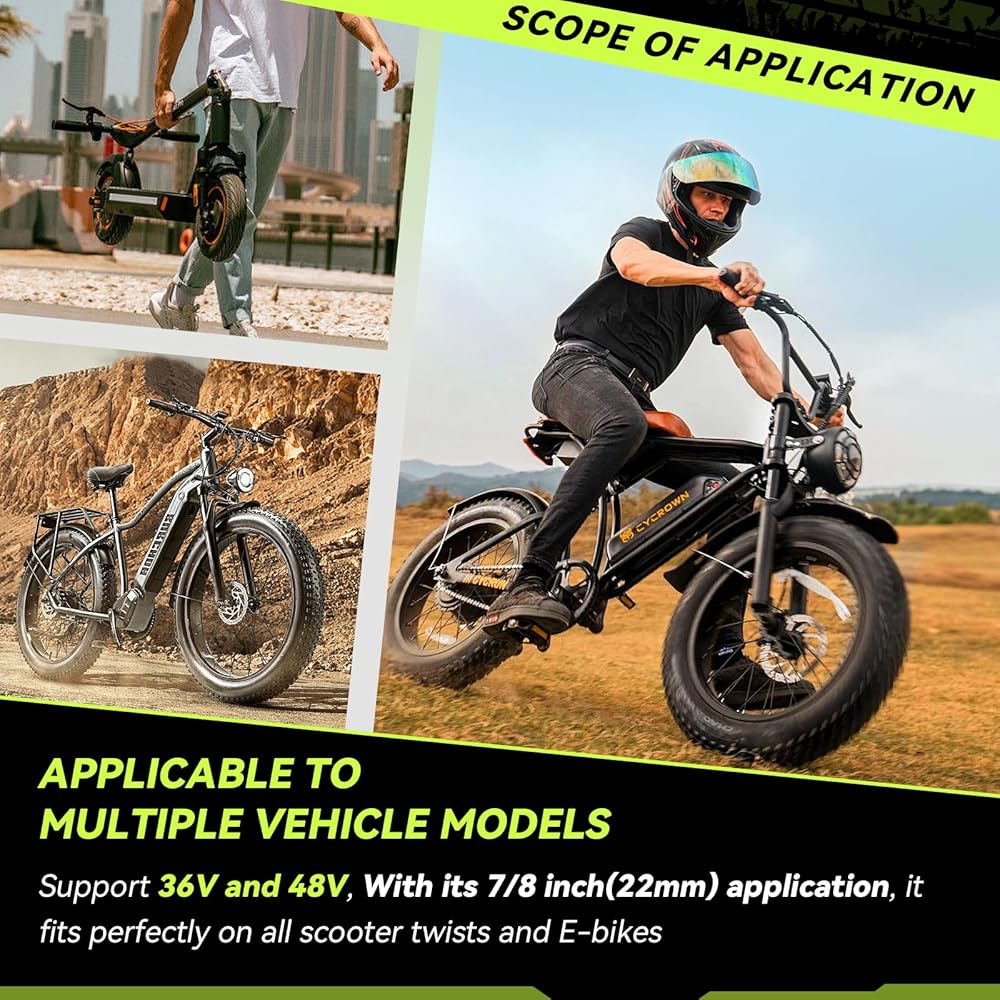 • 【شاشة عرض طاقة LED واضحة 48 فولت وقفل مفاتيح】: تتميز بشاشة LED ساطعة تظهر بدقة مستويات البطارية المتبقية لأنظمة 48 فولت. يضيف مفتاح الإشعال المدمج الأمان والمظهر المخصص والمبسط لسيارتك الكهربائية.