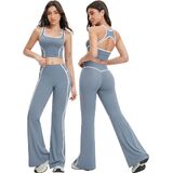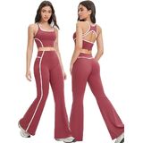 طقم نسائي للتمرين مكون من قطعتين بدون ظهر، كتلة ألوان، تانك توب متطابق مع السراويل الضيقة النشطة ذات الخصر العالي، ملابس اليوغا in Kuwait
