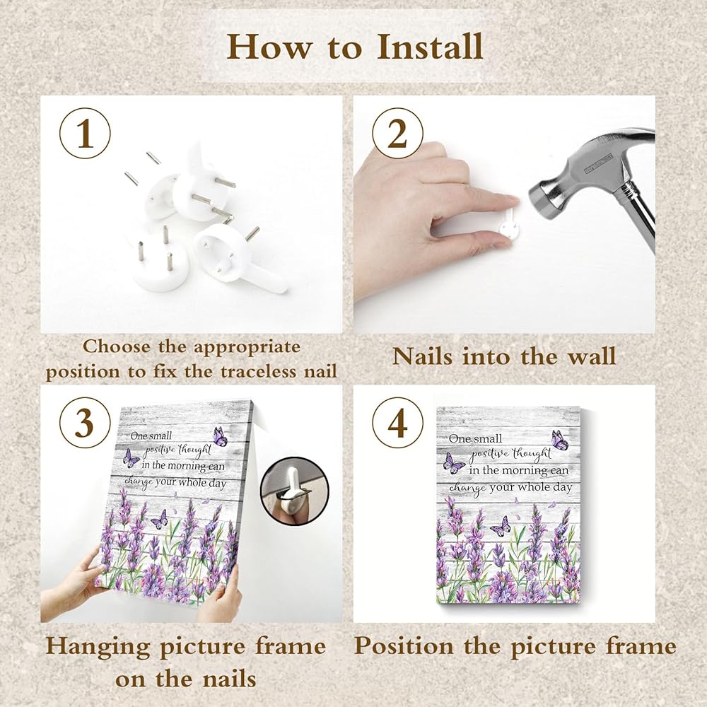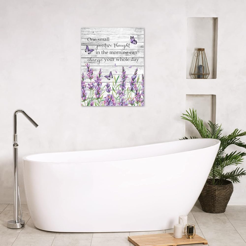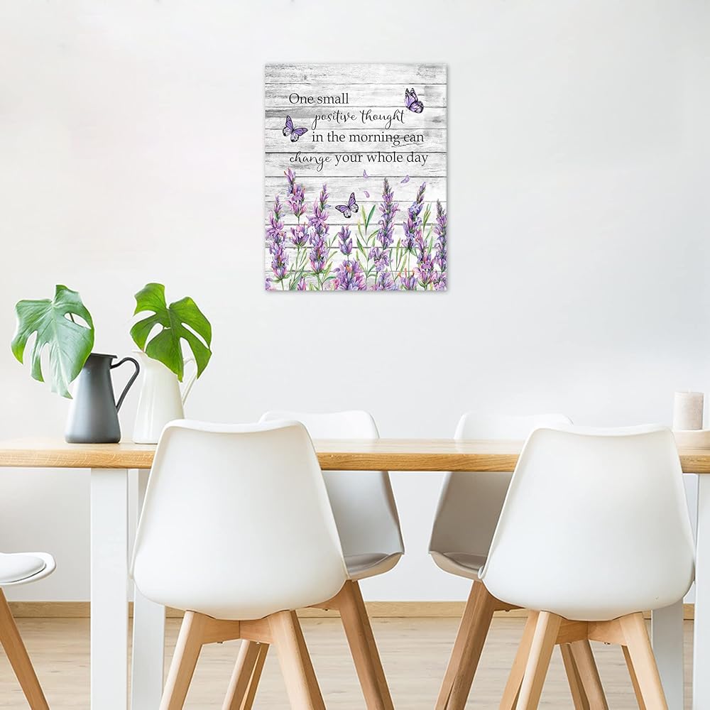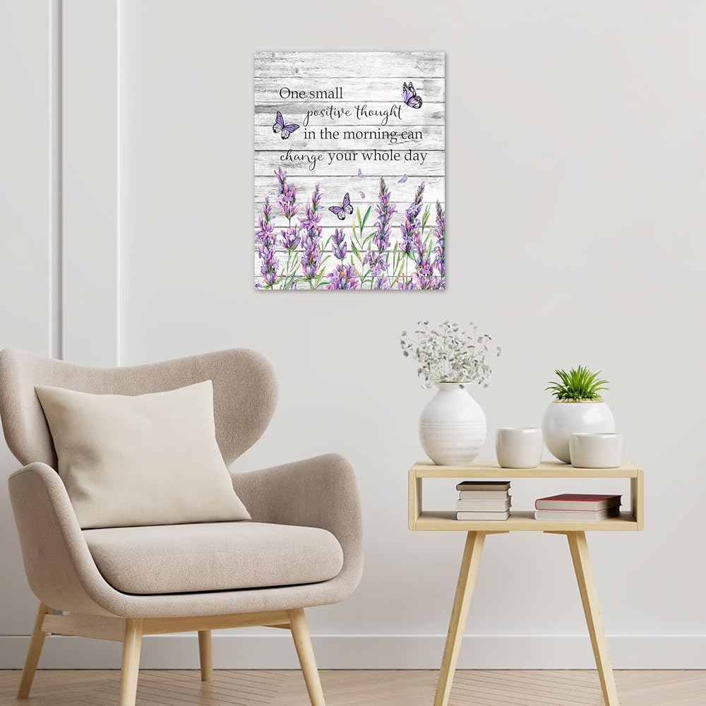 EOBTAIN اقتباسات ملهمة والفراشة الأرجوانية قماش جدار الفن الخزامى الأزهار مع ورقة خضراء جدار الفن للحمام غرفة المعيشة غرفة نوم صورة خمر جدار ديكور مؤطرة غرفة نوم قماش الطباعة، 12 × 16 بوصة