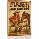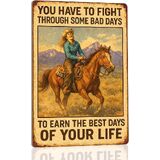 Kizbok Vintage Cowboy Metal Tin Sign, Rustic Cowboy Quote Metal Wall Art Prints, Farmhouse Country Life Western Horse Rider Signs Metal Sign for Bar, Garage Man Cave, Home, Southwestern Theme Decorations 8 x 12 Inch