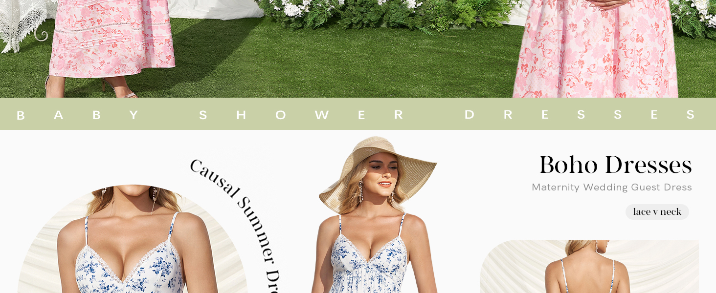 • المناسبات: فساتين حمل للنساء، فستان حمل لحفلات استقبال المولود الجديد، فساتين نسائية لضيوف الزفاف، فستان التقاط الصور للنساء، فستان صيفي للأمومة، فساتين صيفية كاجوال للنساء، فساتين حمل للنساء