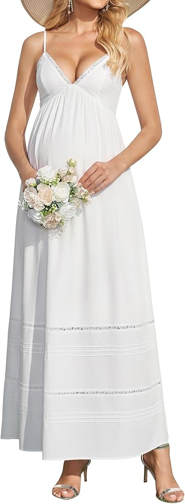 KUTUMAI فساتين ماكسي صيفية من الدانتيل برقبة على شكل V للنساء 2026 فستان غير رسمي مزين بالزهور طويل متدفق لالتقاط الصور استحمام الطفل in Kuwait