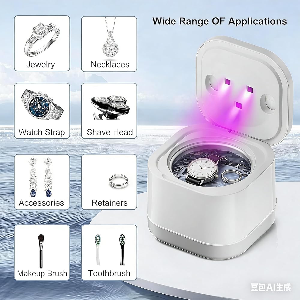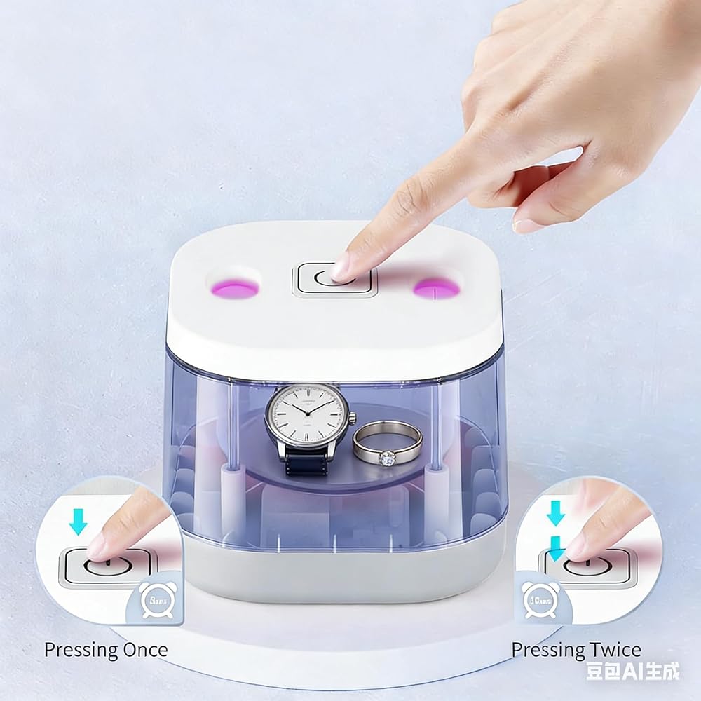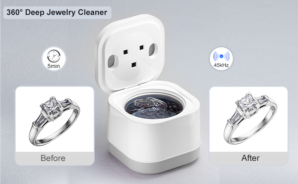 • [الموجات فوق الصوتية + الأشعة فوق البنفسجية] يستخدم المنظف الحلقي الواقي الخاص بنا الأشعة فوق البنفسجية + الموجات فوق الصوتية 45 كيلو هرتز، وهي نسخة محسنة من الأشعة فوق البنفسجية، مع تردد بالموجات فوق الصوتية يبلغ 45 كيلو هرتز. بالمقارنة مع المنتجات الأخرى، فإن ترددنا أعلى، وهو ما يعني أيضًا قدرة تنظيف أعلى، وإزالة الجزيئات/الأوساخ بشكل فعال من الخواتم، والأقراط، والمثباتات، والمصففات، ورؤوس فرشاة الأسنان الكهربائية، وحتى المجوهرات.
