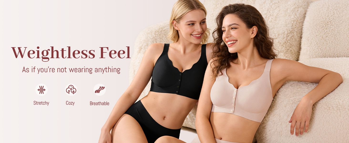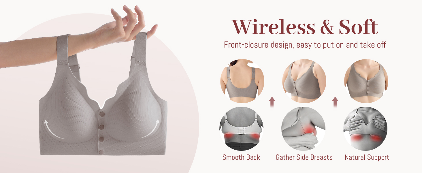 تصميم إغلاق أمامي بدون مجهود: حمالة صدر إغلاق أمامي مع مشبك أمامي سهل تمنع الخطافات الخلفية التي يصعب الوصول إليها، مما يجعل الارتداء أسرع وأسهل. مثالي لكبار السن والنساء ذوي القدرة المحدودة على الحركة أو التعافي بعد العمليات الجراحية أو أي شخص يفضل ارتداء يومي مريح. يرجى الرجوع إلى جدول المقاسات الخاص بنا حيث قد يختلف مقاس حمالة الصدر حسب العلامة التجارية