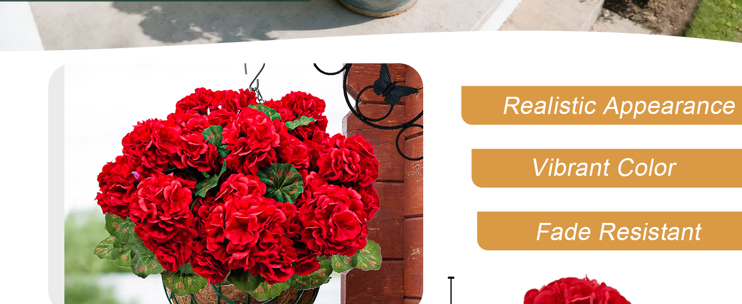 • 【ديكور متعدد الاستخدامات】الزهور الحريرية الخارجية مثالية للديكور الداخلي والخارجي. مناسبة للمزهريات المنزلية، والمزارع، والباب الأمامي، والشرفة، والفناء، وسلة التعليق، وصندوق النوافذ، والحديقة، والشرفة. مثالية لحفلات الزفاف والحفلات والمهرجانات لخلق جو دافئ وممتع