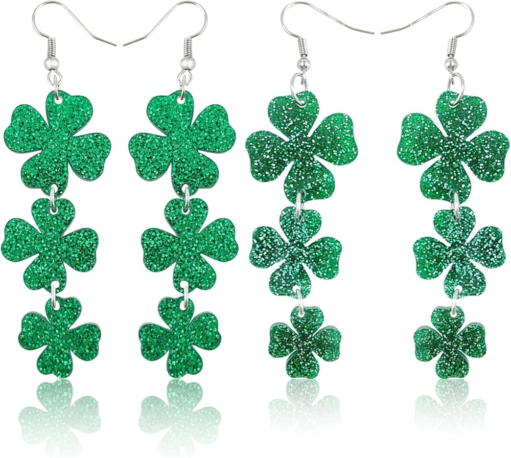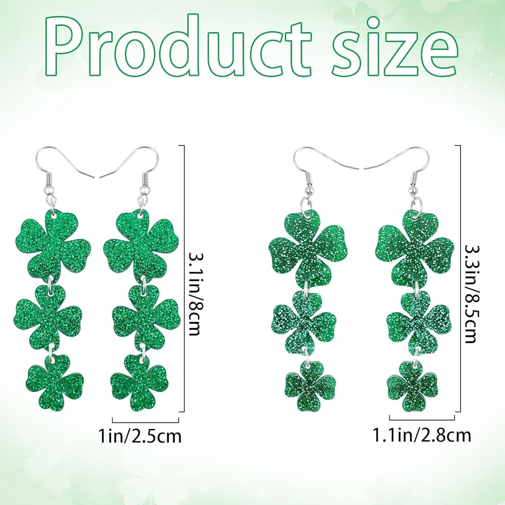 Premium Material for Comfort & Shine:Crafted from high-quality Acrylic or Zinc Alloy, these 2 pairs of st patricks day earrings are lightweight and easy to wear. With bright glitter bling colors and a shiny paint surface, these green earrings for women stand out on St. Patrick's Day, embodying the charm of essential st patricks day accessories that blend durability with style.