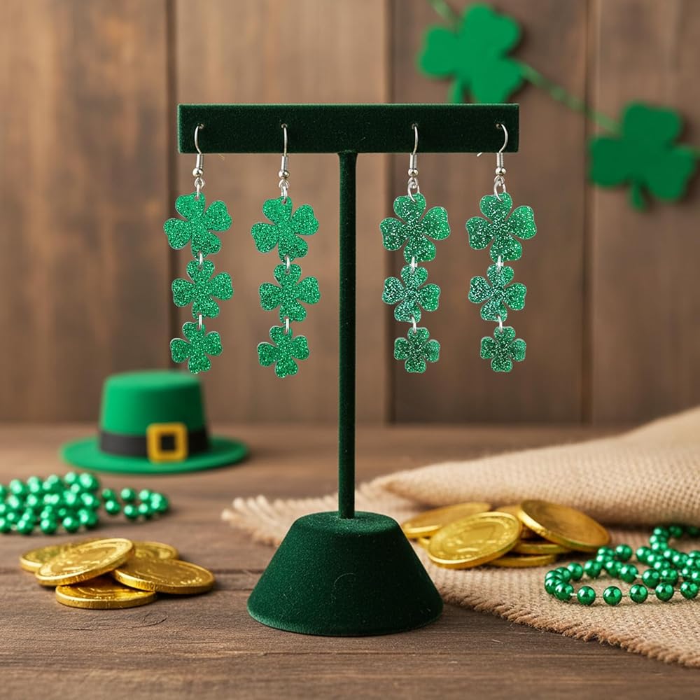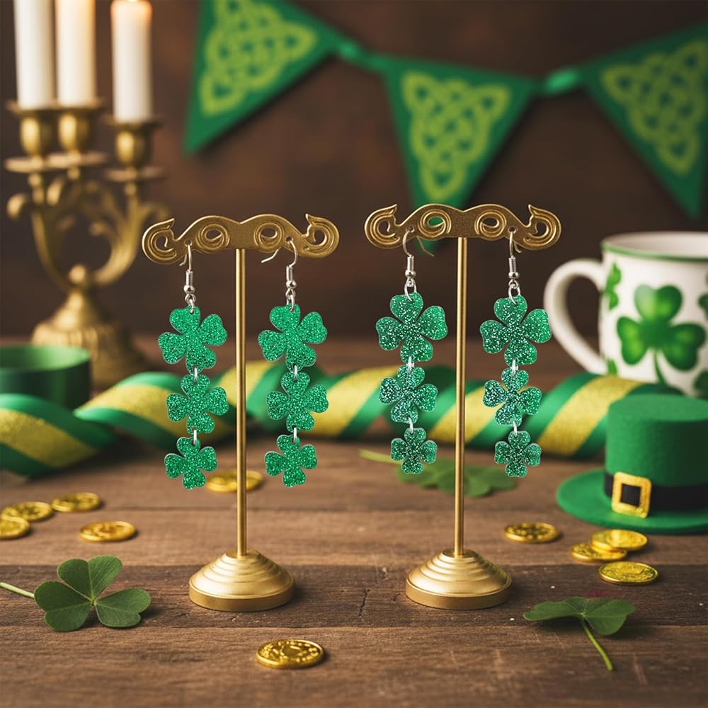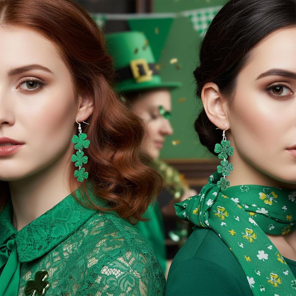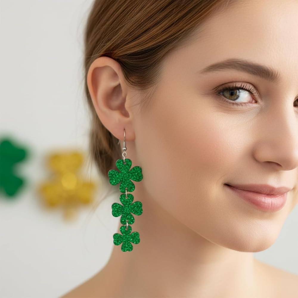 Lucky St. Patrick's Day Earrings Set:This set features shamrock earrings and four leaf clover earrings (also called 4 leaf clover earrings)—symbols of Ireland's patron saint and good fortune. Wearing these st patricks day earrings brings luck to your holiday, making them meaningful additions to any St. Patrick's Day ensemble for those who cherish Irish traditions.