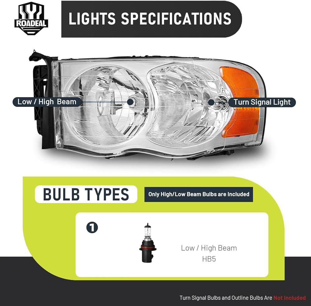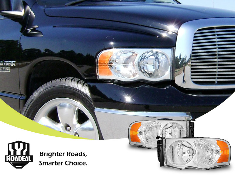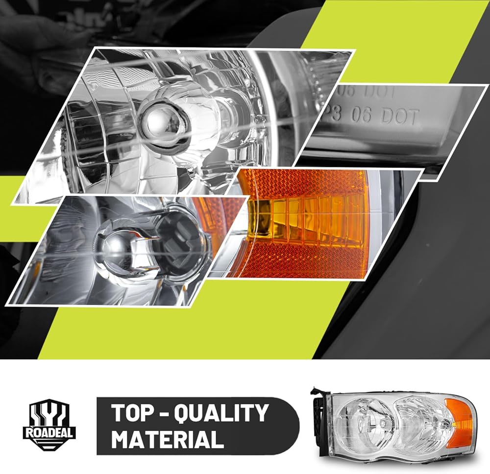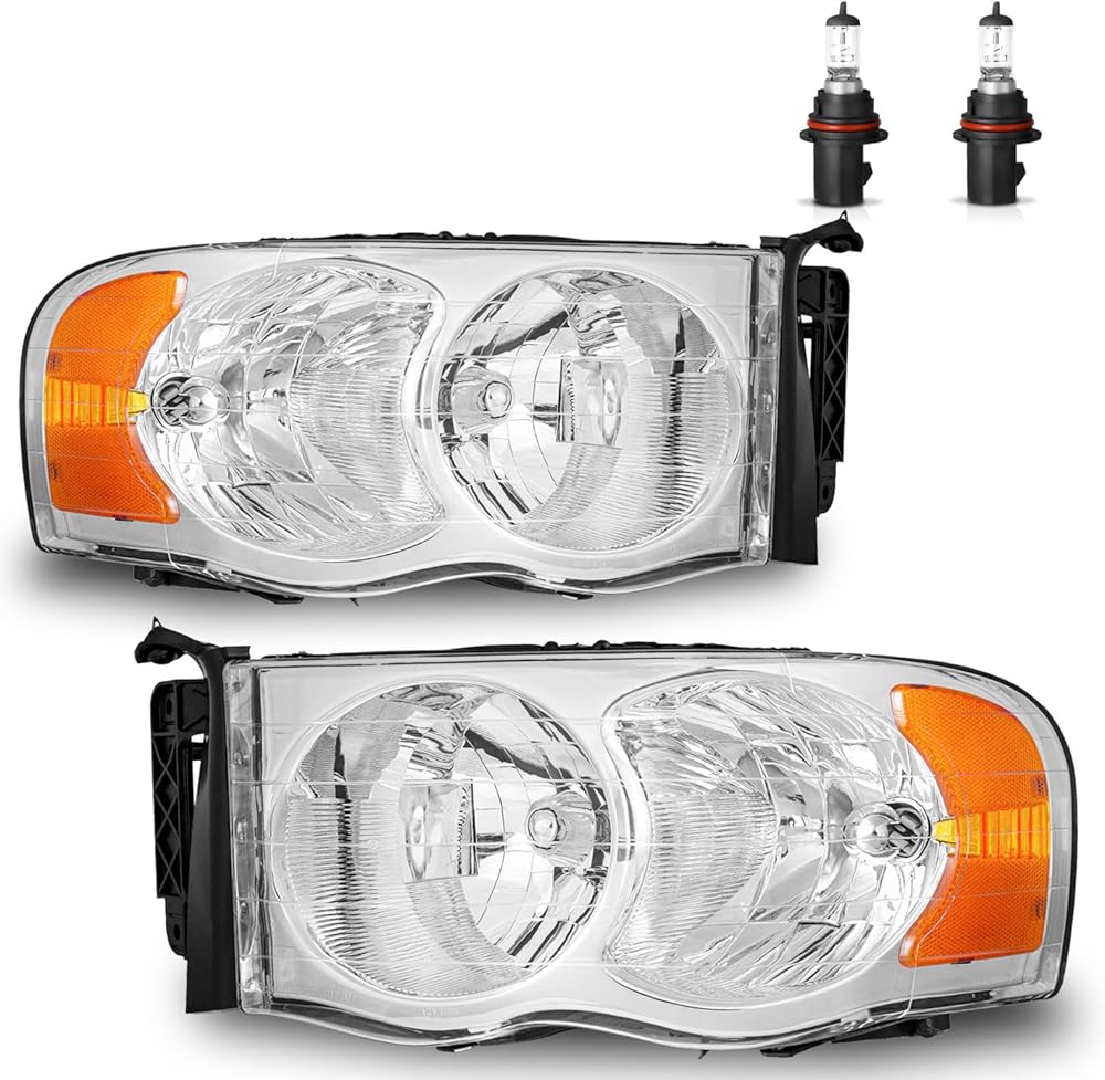 مجموعة المصابيح الأمامية ث/لمبات لـ 02-05 دودج رام 1500 لـ 03-05 دودج رام 2500/3500 استبدال المصابيح الأمامية كروم الإسكان سائق وجانب الركاب