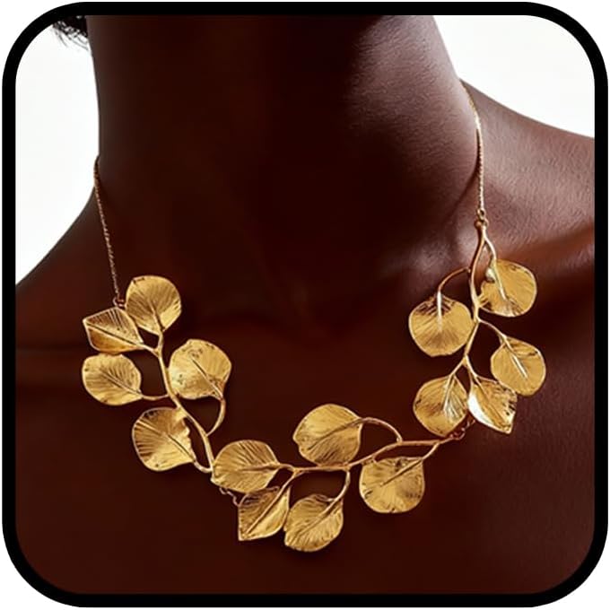 Name: Chunky Gold Statement Choker Necklace for Women, 14k Gold Neckalce Boho Leaf Choker African Jewelry for Women Christmas Birthday Party Non Tarnish.