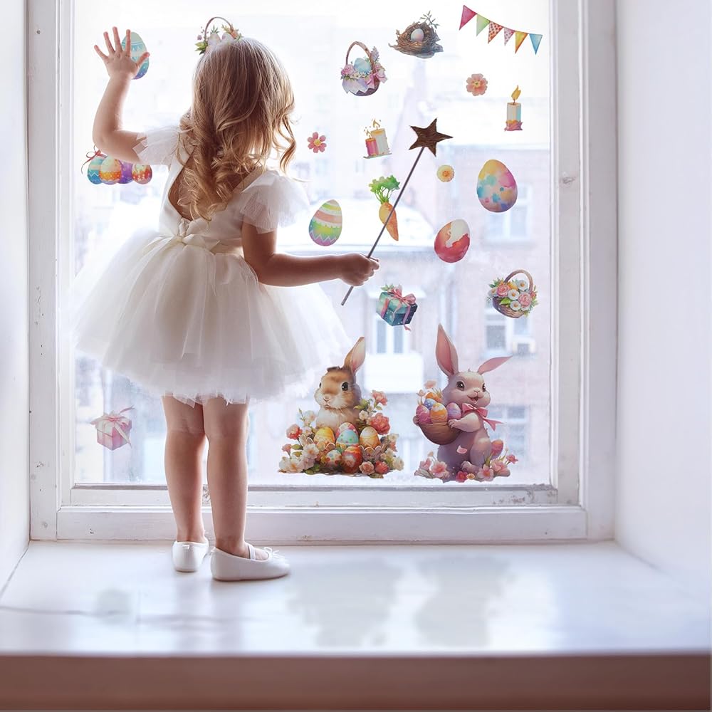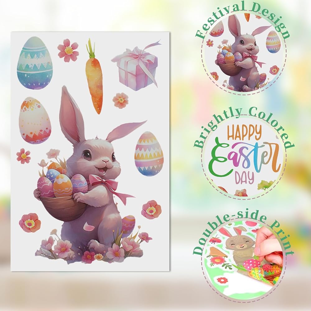ملصقات نافذة لتزيين عيد الفصح عالية الجودة: ملصقات نافذة عيد الفصح مصنوعة من مواد صديقة للبيئة، ملصقات النوافذ الاحتفالية هي خيار جيد تمامًا لاحتفالات العطلات، غير سامة ولا طعم لها بحيث يمكنك استخدام ملصقات ديكورات عيد الفصح للنوافذ دون قلق