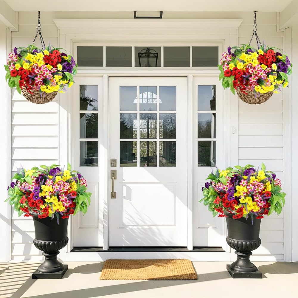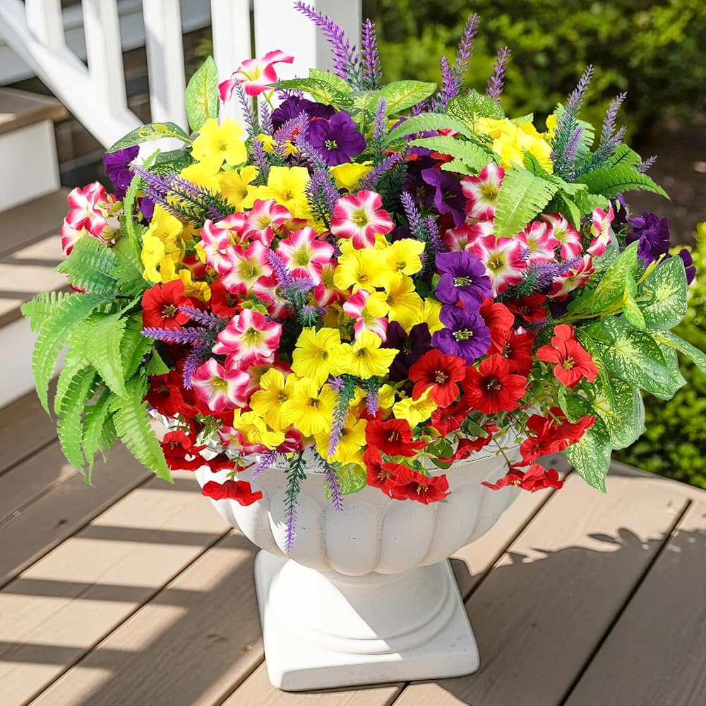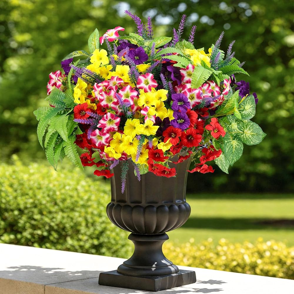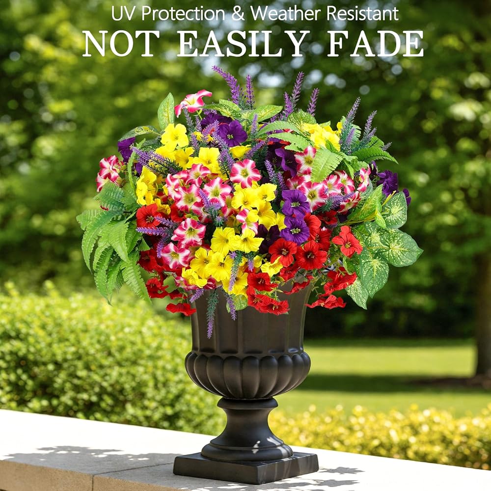 متينة ومقاومة للطقس - لا تبهت أبدًا: مصممة للاستخدام الخارجي على مدار العام، تتميز هذه الزهور الصناعية بطبقات مقاومة للماء والأشعة فوق البنفسجية. استمتع بأزهار نابضة بالحياة في المطر أو أشعة الشمس - يظل اللون صحيحًا خلال الشمس والرياح والأمطار الغزيرة دون أن يذبل أو يتطلب أي سقاية.