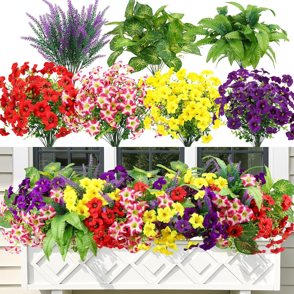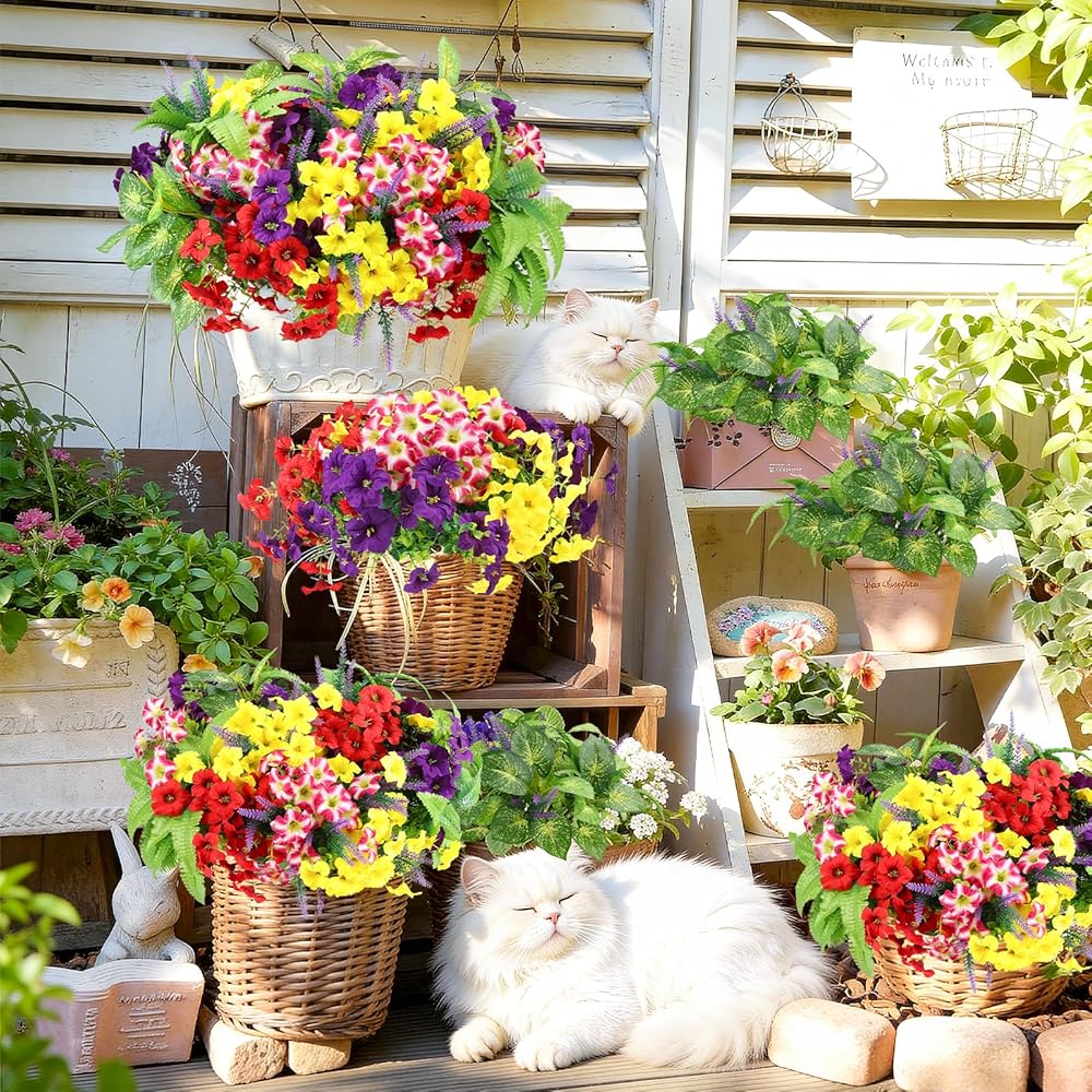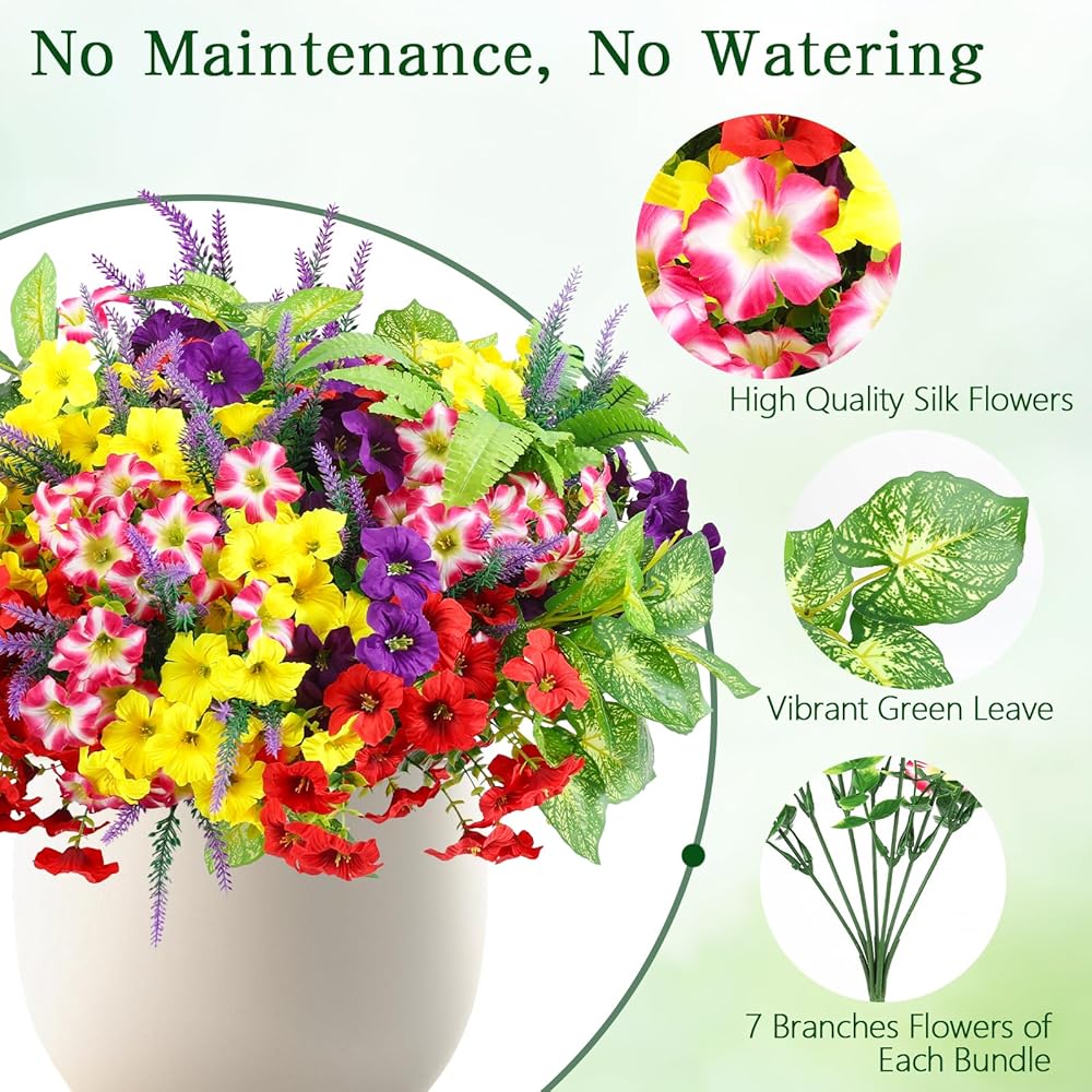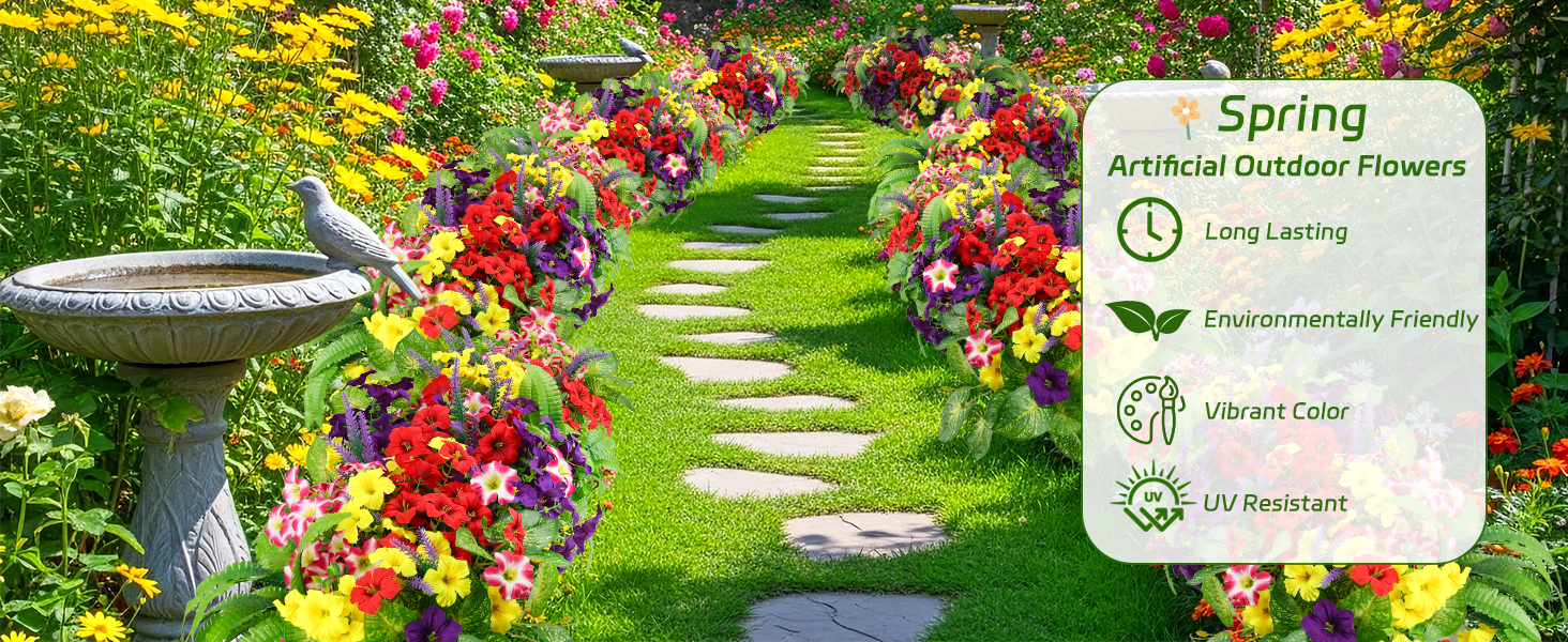 متينة ومقاومة للطقس - لا تبهت أبدًا: مصممة للاستخدام الخارجي على مدار العام، تتميز هذه الزهور الصناعية بطبقات مقاومة للماء والأشعة فوق البنفسجية. استمتع بأزهار نابضة بالحياة في المطر أو أشعة الشمس - يظل اللون صحيحًا خلال الشمس والرياح والأمطار الغزيرة دون أن يذبل أو يتطلب أي سقاية.