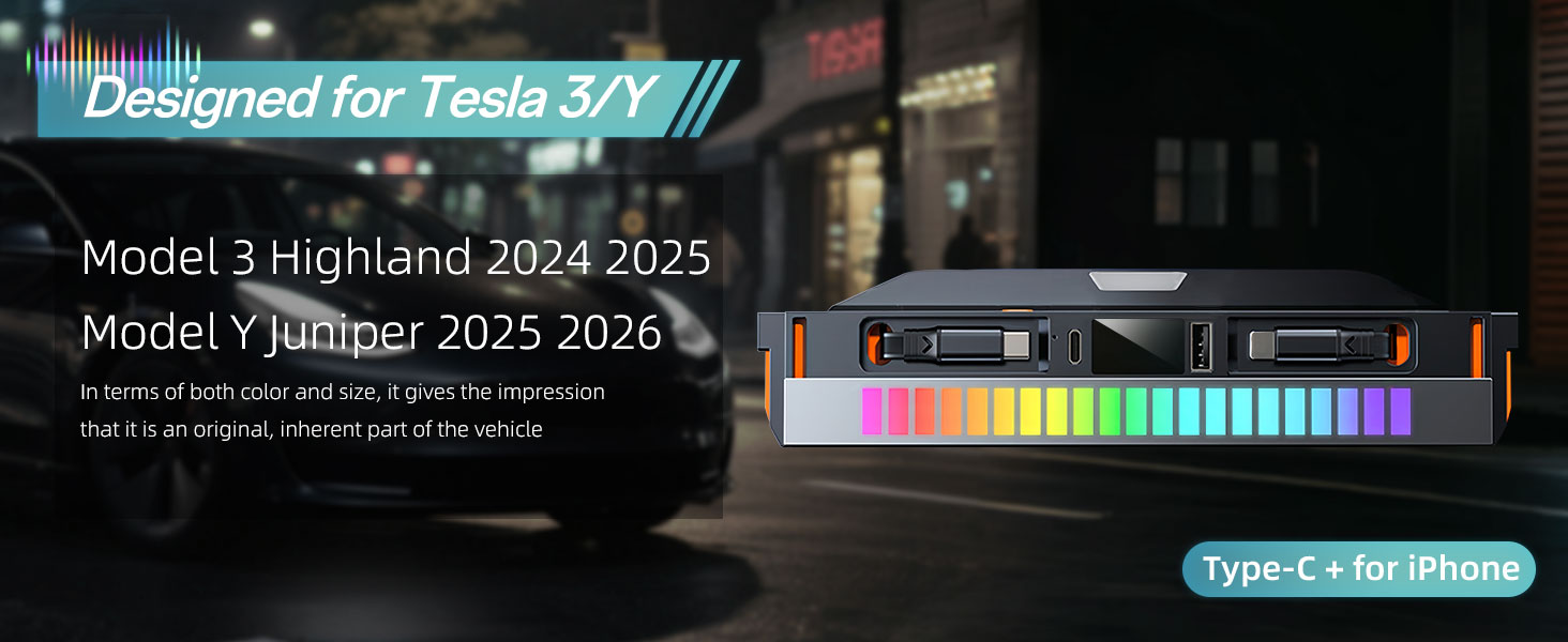 مصمم لـ Tesla: تم تصميم محور USB هذا بدقة لوحدات التحكم المركزية في 2025 2026 Model Y Juniper و2024 2025 Model 3 Highland. تتطابق خطوطها وأبعادها ولونها مع التصميم الداخلي للمصنع، مما يخلق انطباعًا بأنها مدمجة في السيارة منذ البداية. يمتزج التصميم بشكل طبيعي، مما يضيف وظائف دون تغيير مظهر سيارتك. يتكامل تصميمها المعياري بسلاسة مع كبائن Model3 Highlander وModelY Juniper للحصول على مظهر حقيقي على طراز المصنع