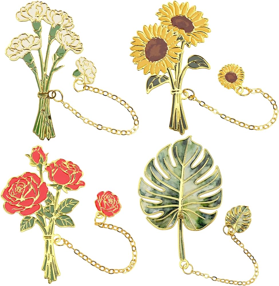 4 قطع من الإشارات المرجعية المعدنية مع سلسلة، علامات كتاب جميلة على شكل زهرة الفراشة للبالغين، مجموعة مستوحاة من الطراز القديم للكتاب والمراهقين والرجال والنساء، هدايا إكسسوارات القراءة لمحبي الكتب (النمط أ) in Kuwait