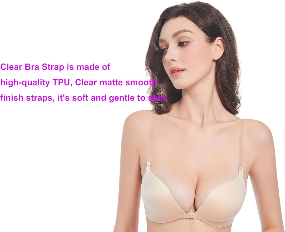 عملية ومريحة: تأتي أحزمة الكتف بلون شفاف، والذي سيمتزج مع لون بشرتك جيدًا. يسمح لك بارتدائه بشكل مريح دون إيذاء بشرتك، ويمكن إعادة استخدامه دون التسبب في حساسية الجلد. أشرطة حمالة الصدر الشفافة قابلة للغسل.