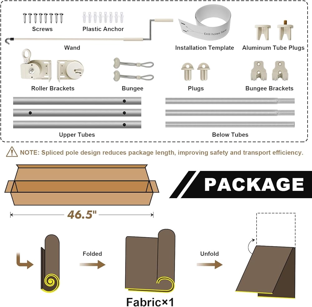 • AFTER SALES SUPPORT: Your satisfaction is our top priority at Artpuch! Each package contains a roller blind tube (splice-free for 20–59" widths, 1 splice for 60–95" widths, 2 splices for 96–144" widths, per your selected size), a detailed installation guide, and a full set of mounting hardware. Reach out to us with missing/damaged parts or installation questions—we'll resolve your issue within 24 hours.