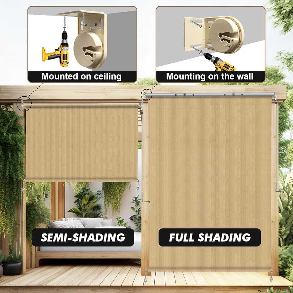 • VERSATILE OUTDOOR SETTING: Artpuch Outdoor Roller Shades are the perfect fit for a wide range of outdoor spaces, including porches, gazebos, patios, backyards, decks, balconies, pergolas, and more. Tailor the ambiance of your chosen scene with ease and style, from tranquil mornings with a cup of coffee to vibrant garden parties or cozy family dinners