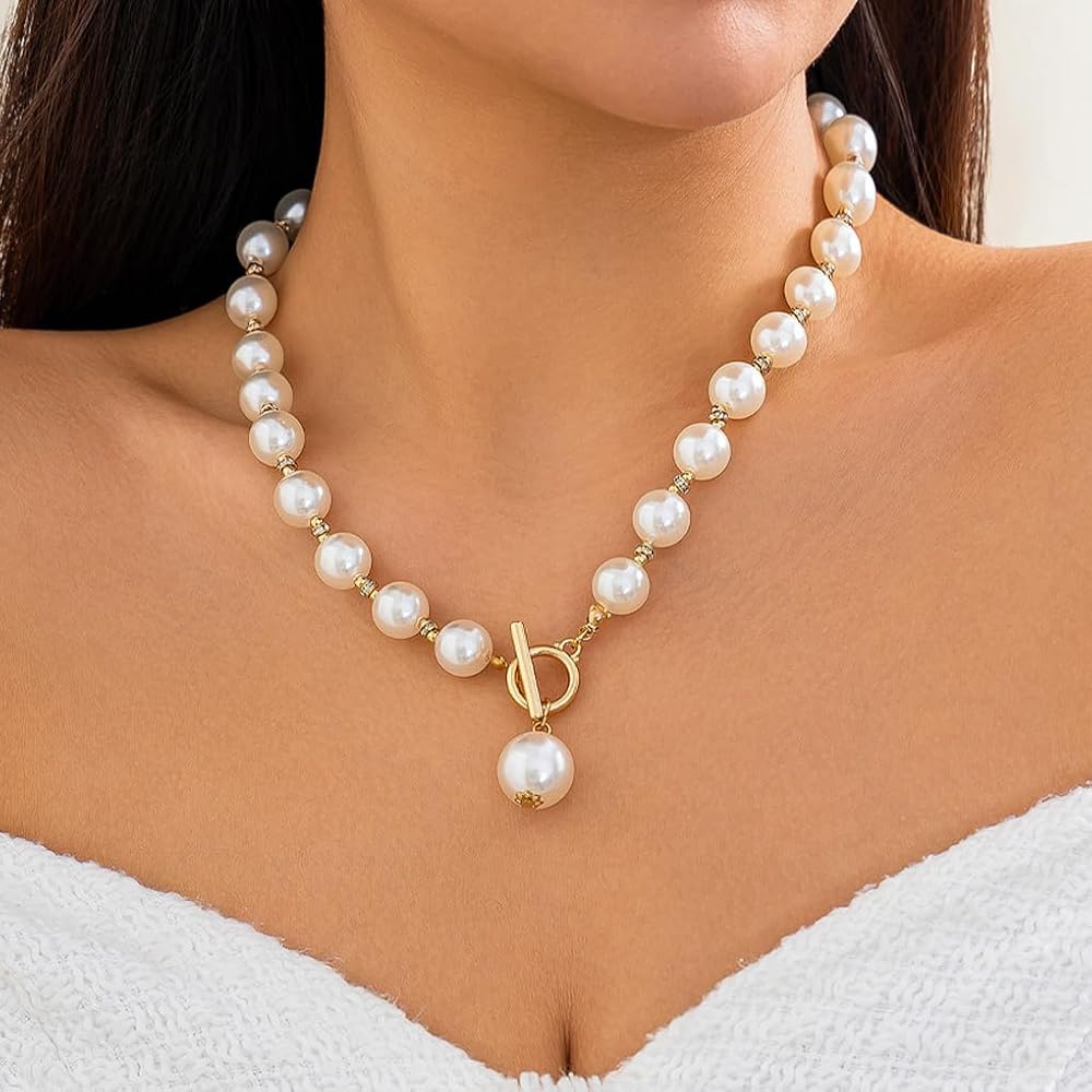 Unique Design: This vintage chunky pearl necklace features large pearls with a beaded look that makes a real statement. The mix of a classic style with a bold, modern size gives you that trendy bridal wedding guest pearl jewelry vibe