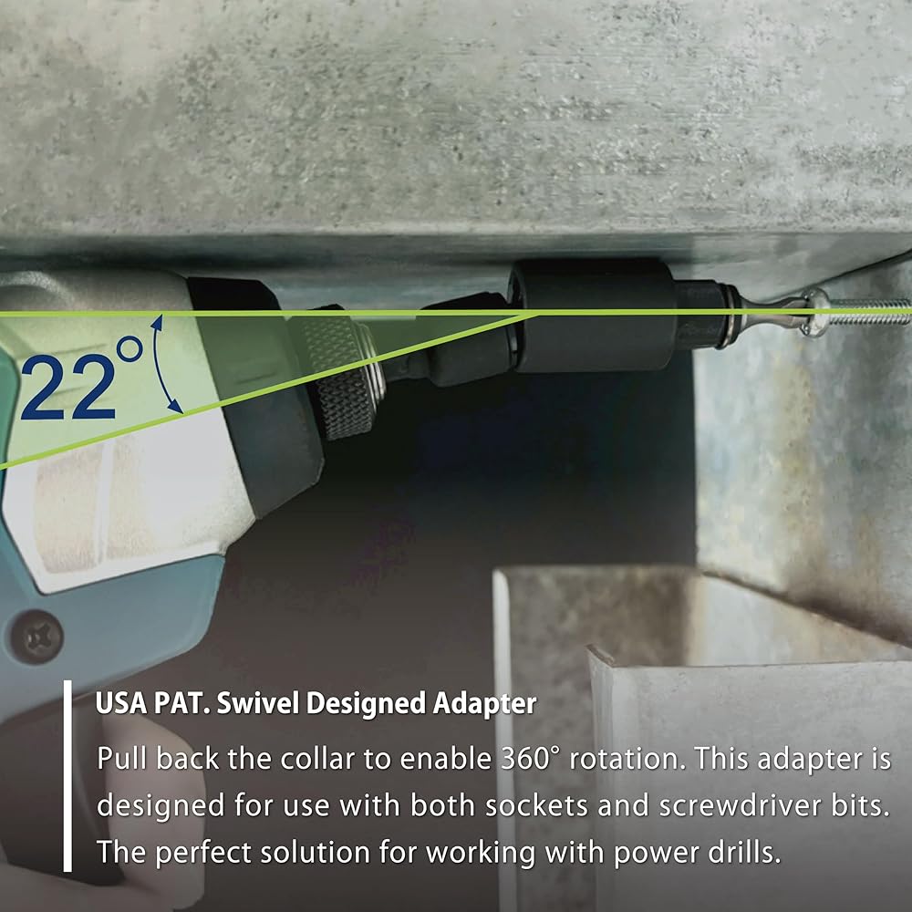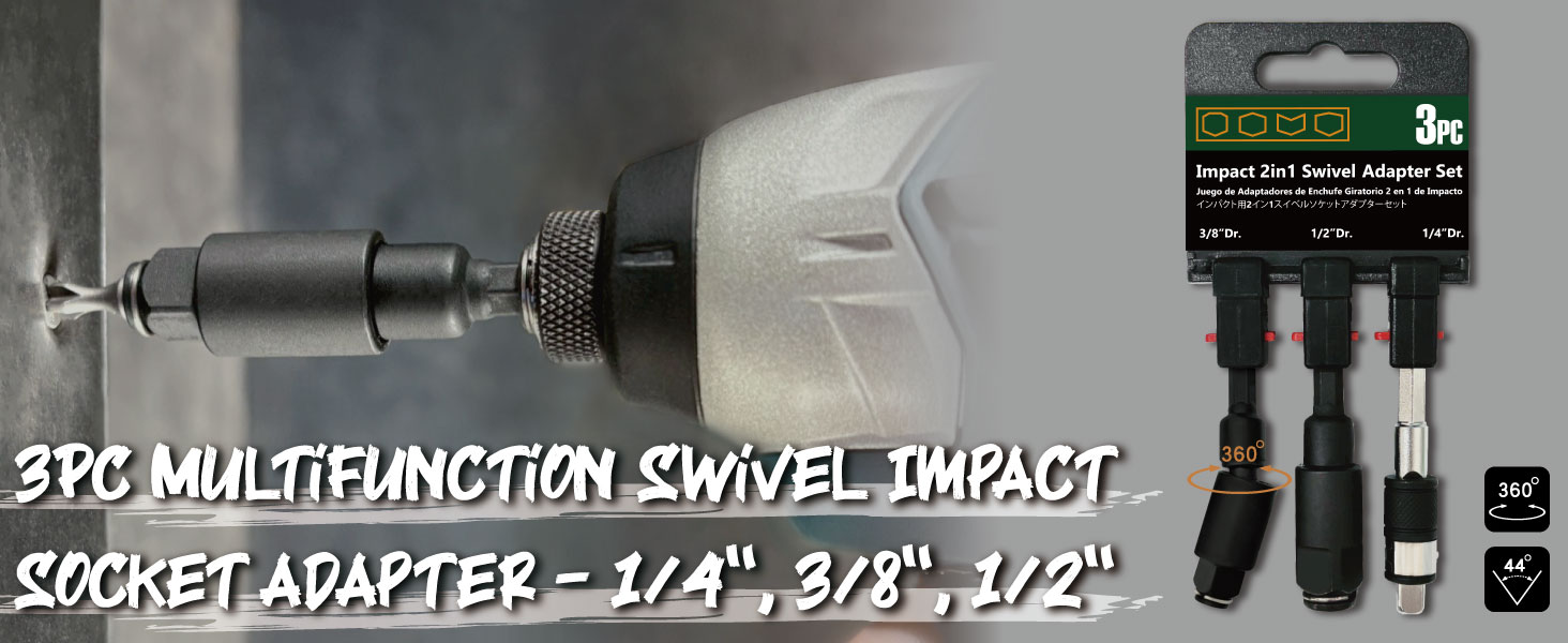 【تصميم مبتكر】: براءة اختراع جديدة لمحول التأثير الوظيفي 3 في 1 والذي يشمل: استخدام القطع واستخدام المقبس واستخدام الدوران 360 درجة. ** محرك أقراص مقاس 1/4 بوصة بتصميم ثابت (غير دوار) ووحدة تخزين مدمجة 2 في 1 للحفاظ على تنظيم القطع والمقابس.